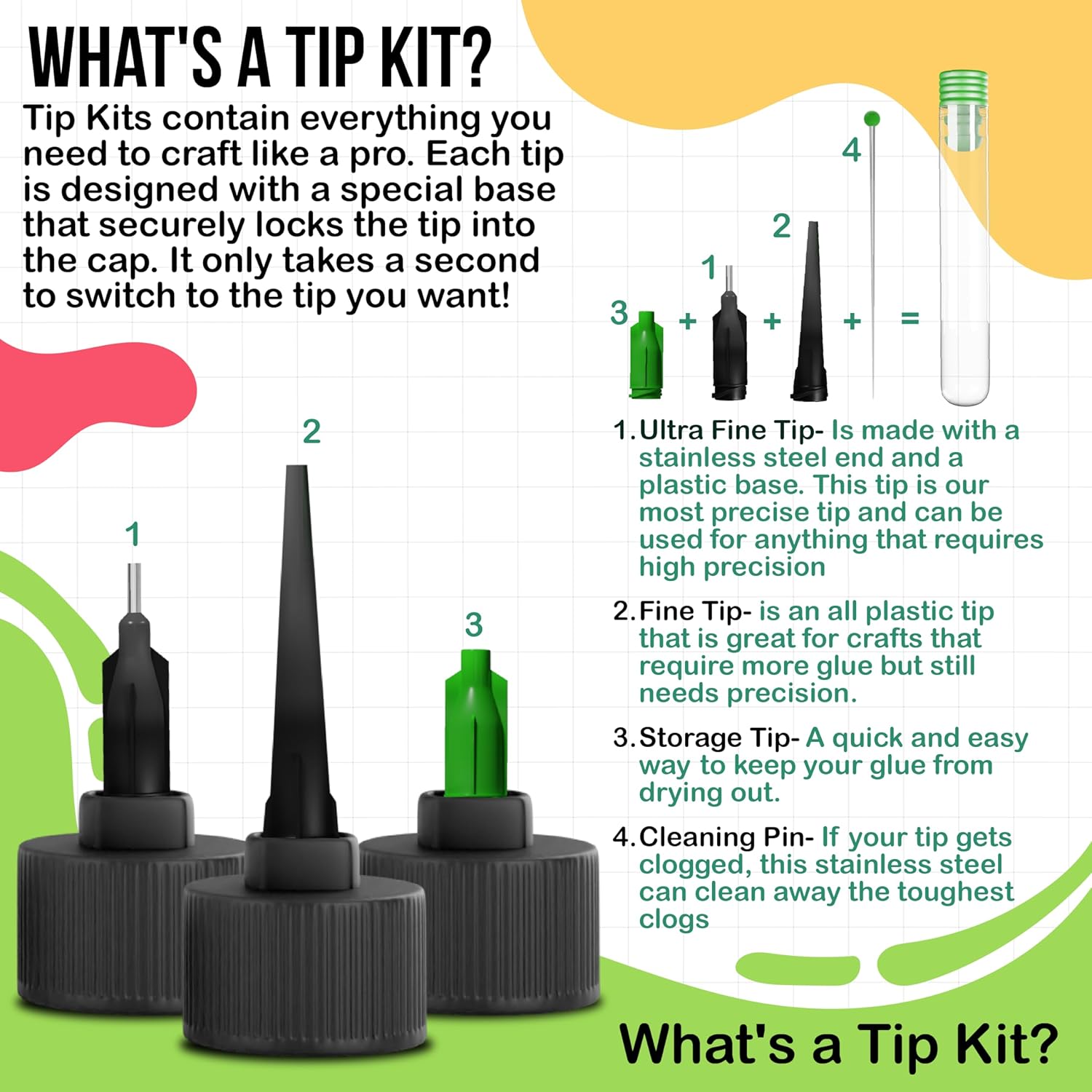 - Tip Kit with Multiple-Sized Tips - Provides more choices in application! Get better accuracy, freedom, and control with precision tips that twist and snap into place!