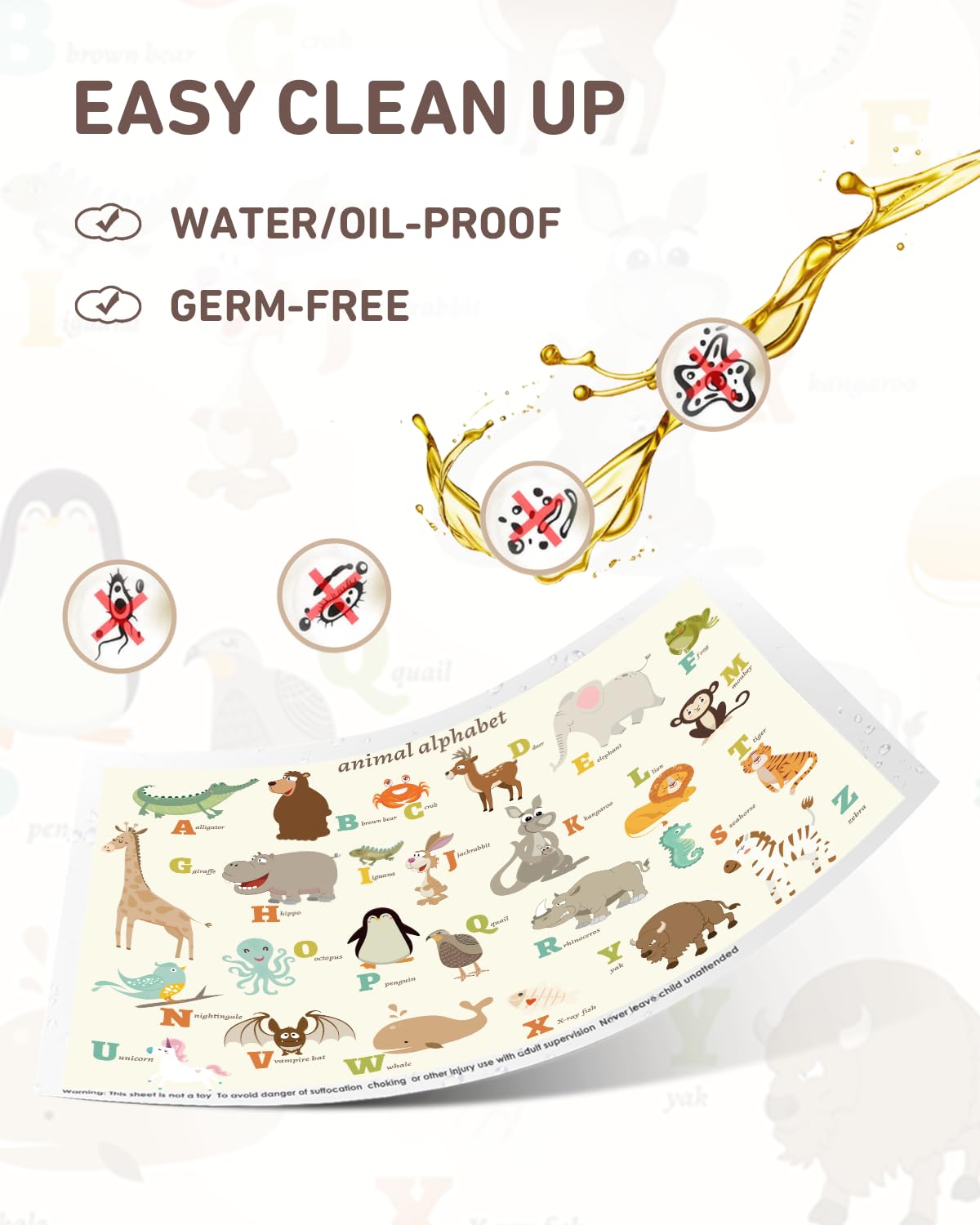 - Babebay Disposable Stick-on Placemats 40 Pack for Baby & Kids & Toddler, Sticky Placemats Restaurant Table Mats 12" x 18" (Animal Alphabet)