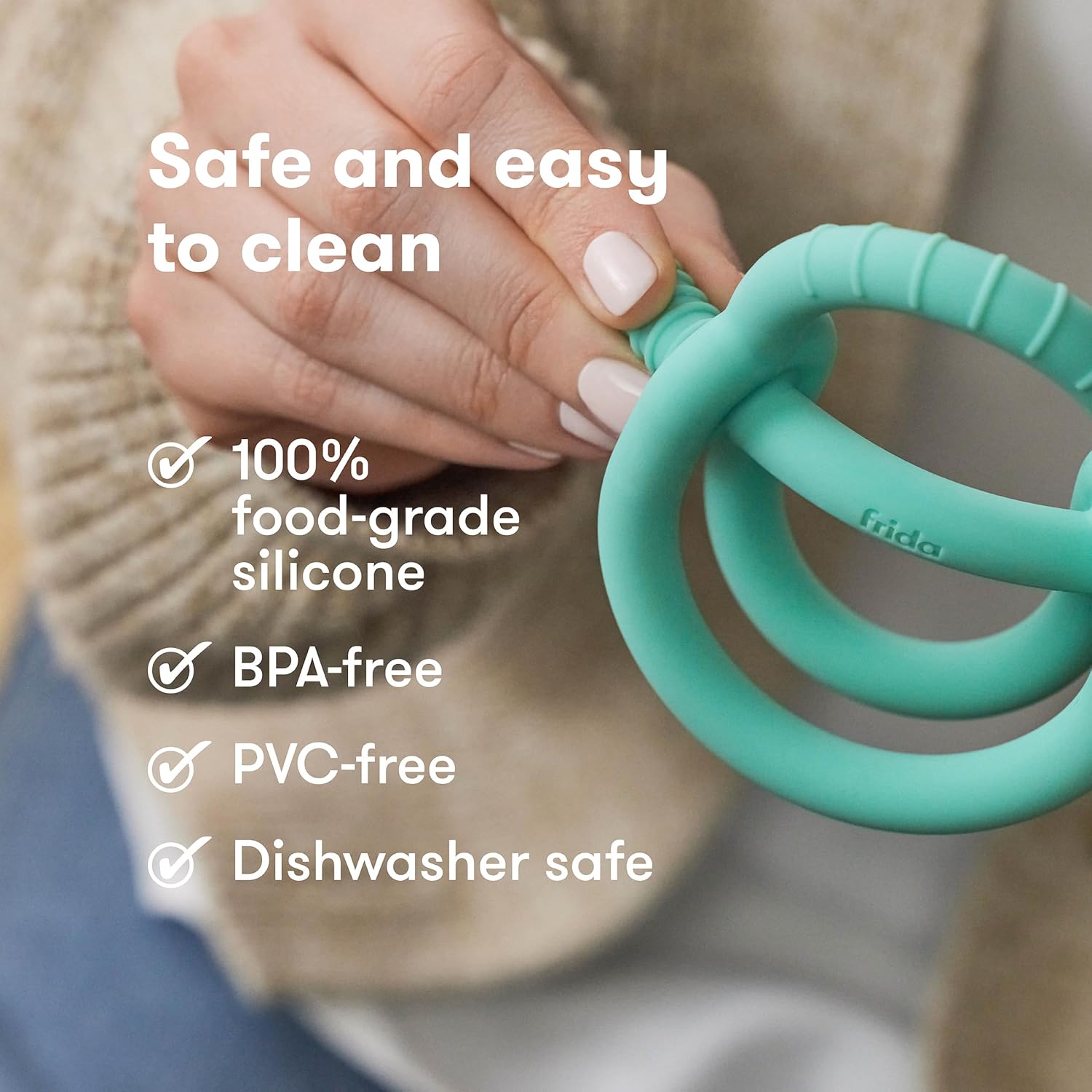 - Frida Baby Get-A-Grip Silicone Teether for Teething Pain Relief, BPA-Free Food-Grade Teething Toys for Infant Baby Newborn 0-6, 12, 18 Months, Easy-Grip Teether Ring, PVC-Free, Teal