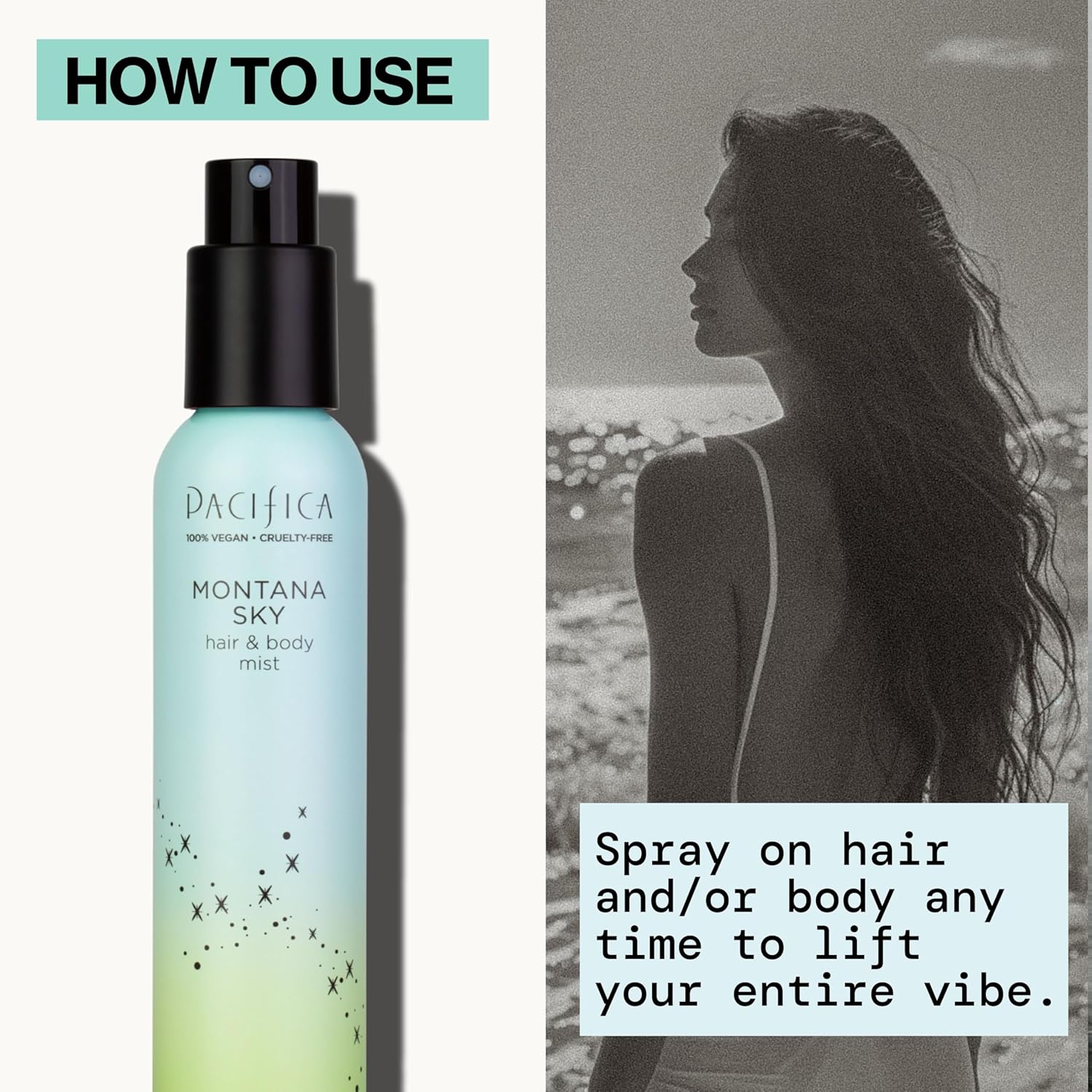 Pacifica Hair Mist Perfume & Full Body Spray for Women - Montana Sky Body Mist Fragrance w/Cedarwood, Elderflower, Black Pepper, Sage & Sandalwood Clean Beauty Alcohol-Free, Vegan & Cruelty-Free 5 oz