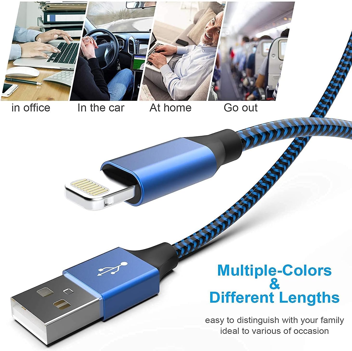 - [Apple MFi Certified] 6Pack 3/3/6/6/6/10 FT iPhone Charger Nylon Braided Fast Charging Lightning Cable Compatible iPhone 14 Pro/13 mini/13/12/11 Pro MAX/XR/XS/8/7/Plus/6S/SE/iPad
