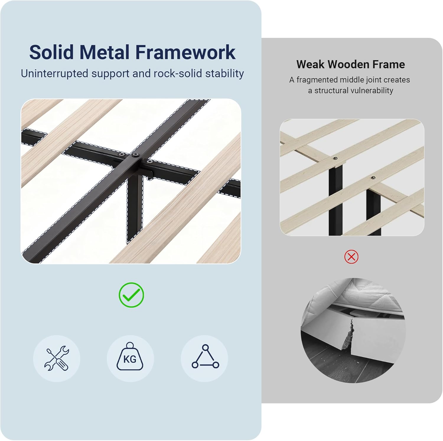 - Sturdy and Durable: Made with a sturdy high-quality metal frame and center support legs blend naturally into the sturdy frame to provide dense and strong support. Weight capacity: 800 Lbs.