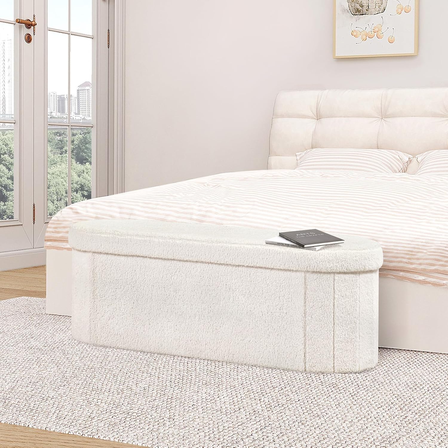 - B FSOBEIIALEO Ottoman with Storage for Living Room, Sherpa Folding Storage Ottoman Foot Rest, 43.3 Inches Collapsible Bedroom Bench White