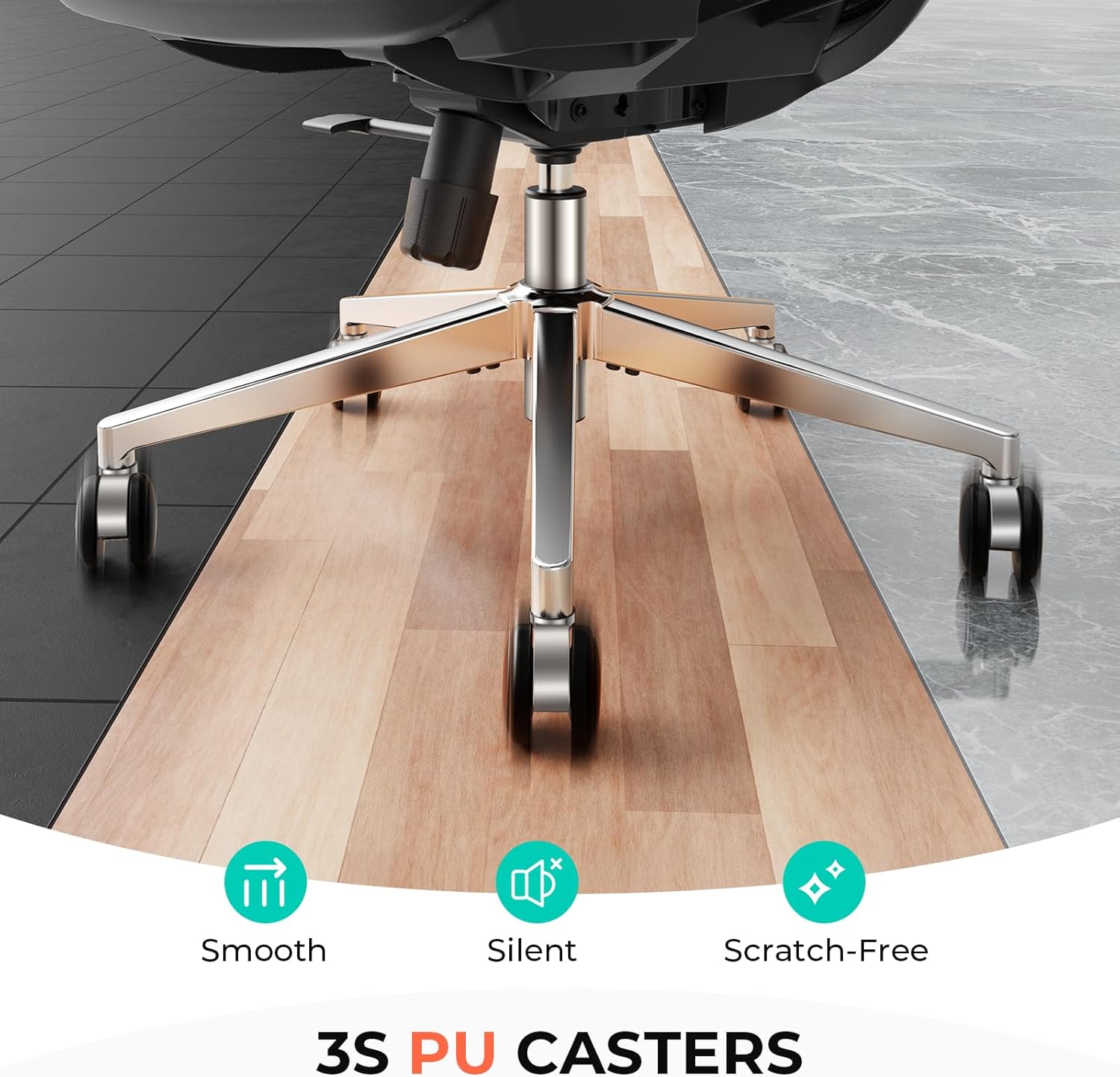 - DETAIL-ORIENTED Wide, non-peeling soft armrests and a 90° flip-up feature paired with silent PU wheels, allowing it to smoothly roll under the desk to maximize your workspace without leaving marks on the floor.