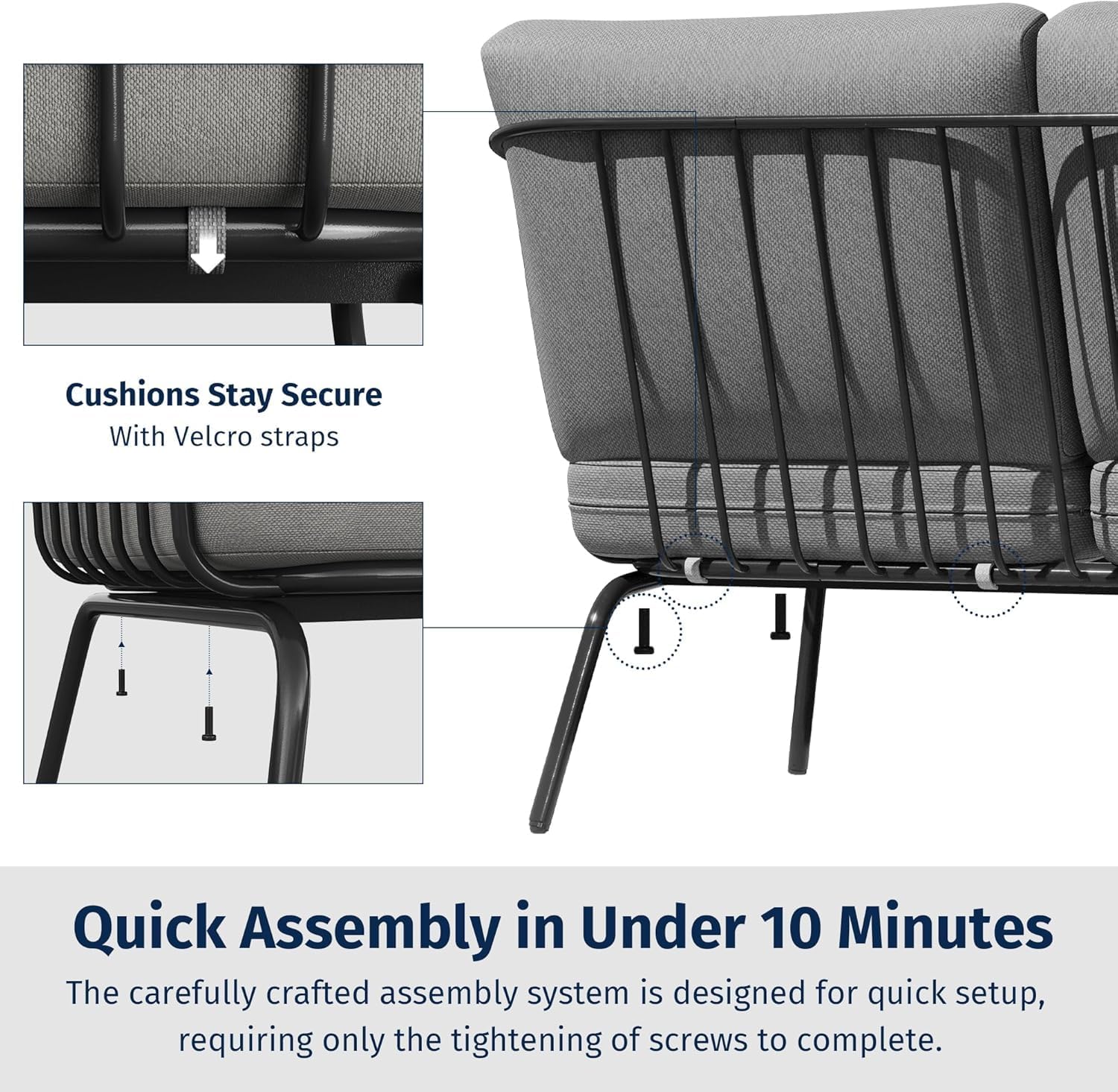 - EAST OAK 4-Piece Plaza Patio Furniture Set, Outdoor Furniture for Balcony, Poolside, and Yard, with Thick Cushion Sofa and Coffee Table, Modern Patio Conversation Set, Black & Grey
