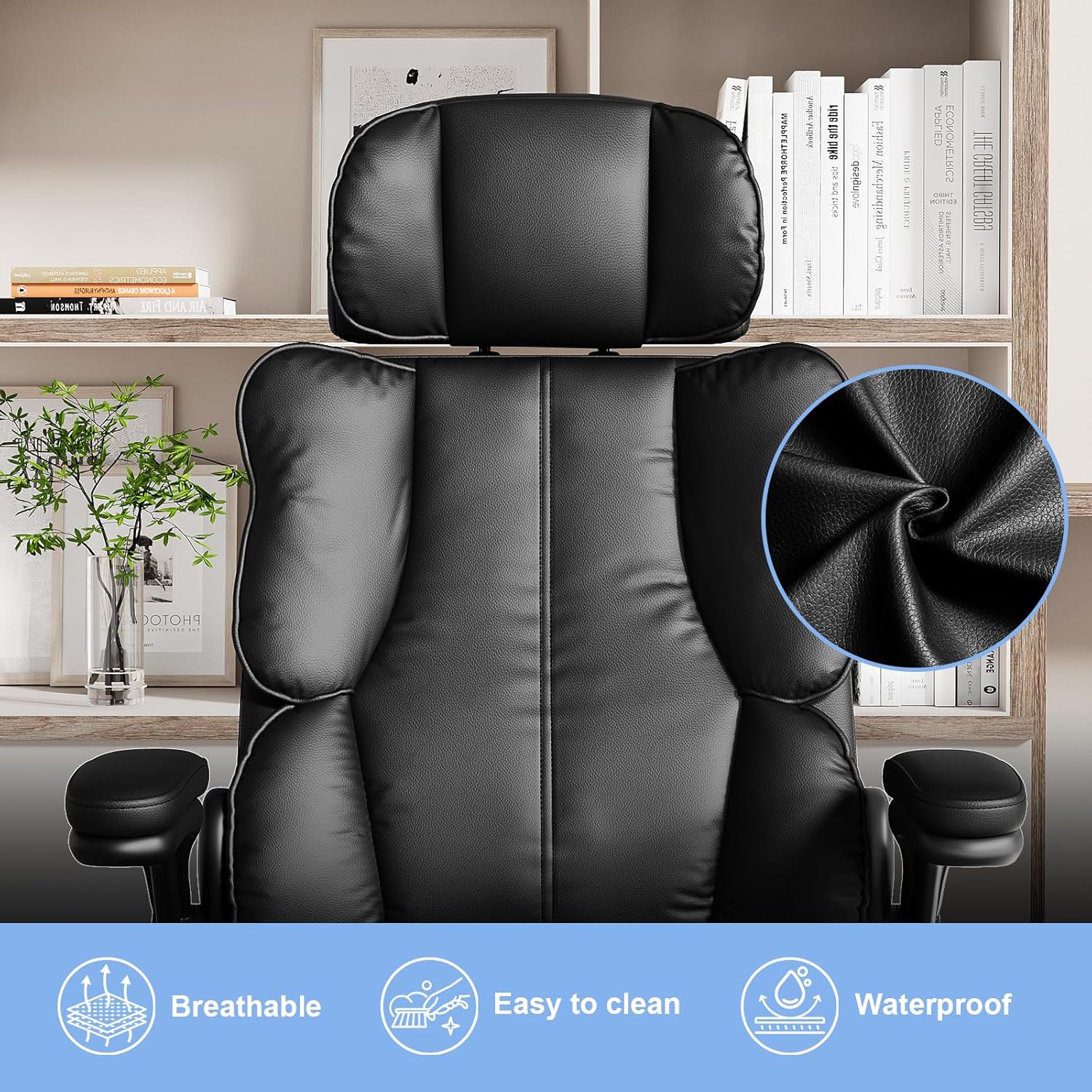 - Executive Leather Office Chair, Computer Chair with Thick Cushion & Lumbar Support, Ergonomic Desk Chair with Adjustable Headrest & Armrests,Black