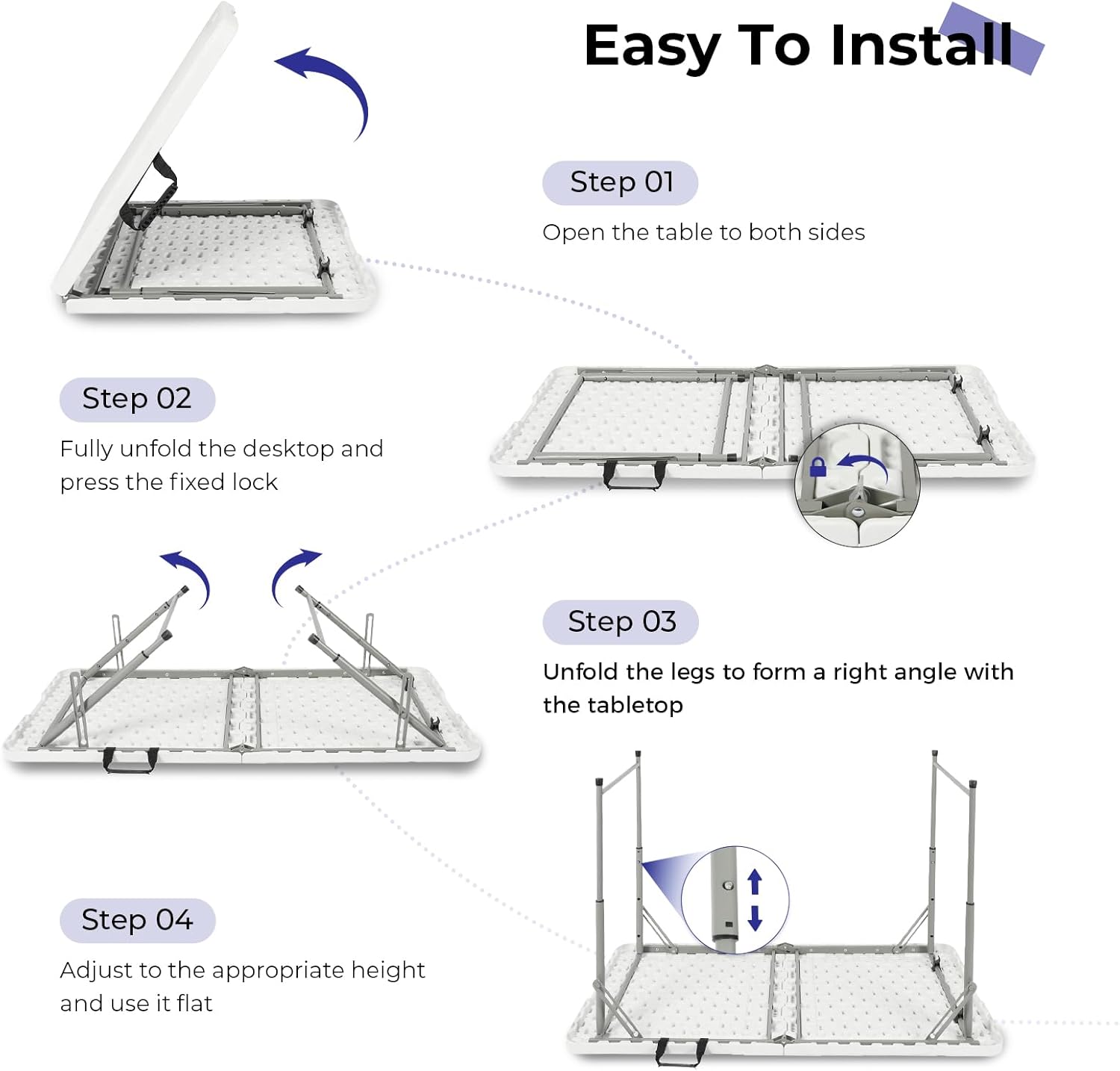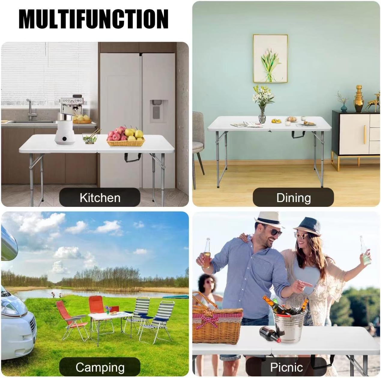 - Folding Table 4 Foot Portable Heavy Duty Plastic Fold-in-Half Utility Table Small Indoor Outdoor Adjustable Height Folding with Carrying Handle, Camping and Party,White