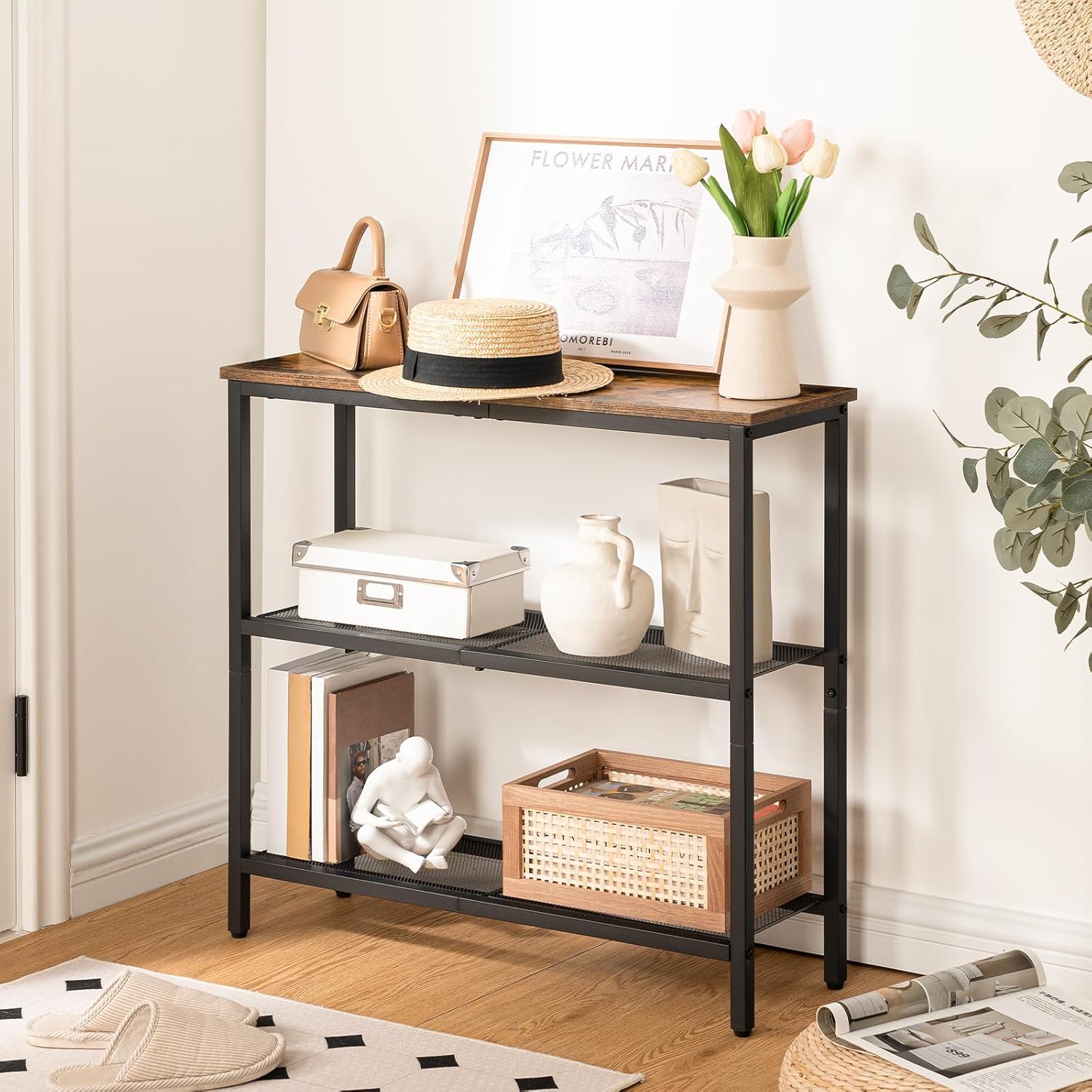 - HOOBRO 29.5" Narrow Console Table, 3-Tier Entryway Table, Thin Sofa Table with Shelves, Side Table, Display Table, for Hallway, Entrance, Living Room, Bedroom, Rustic Brown and Black BF73XG01