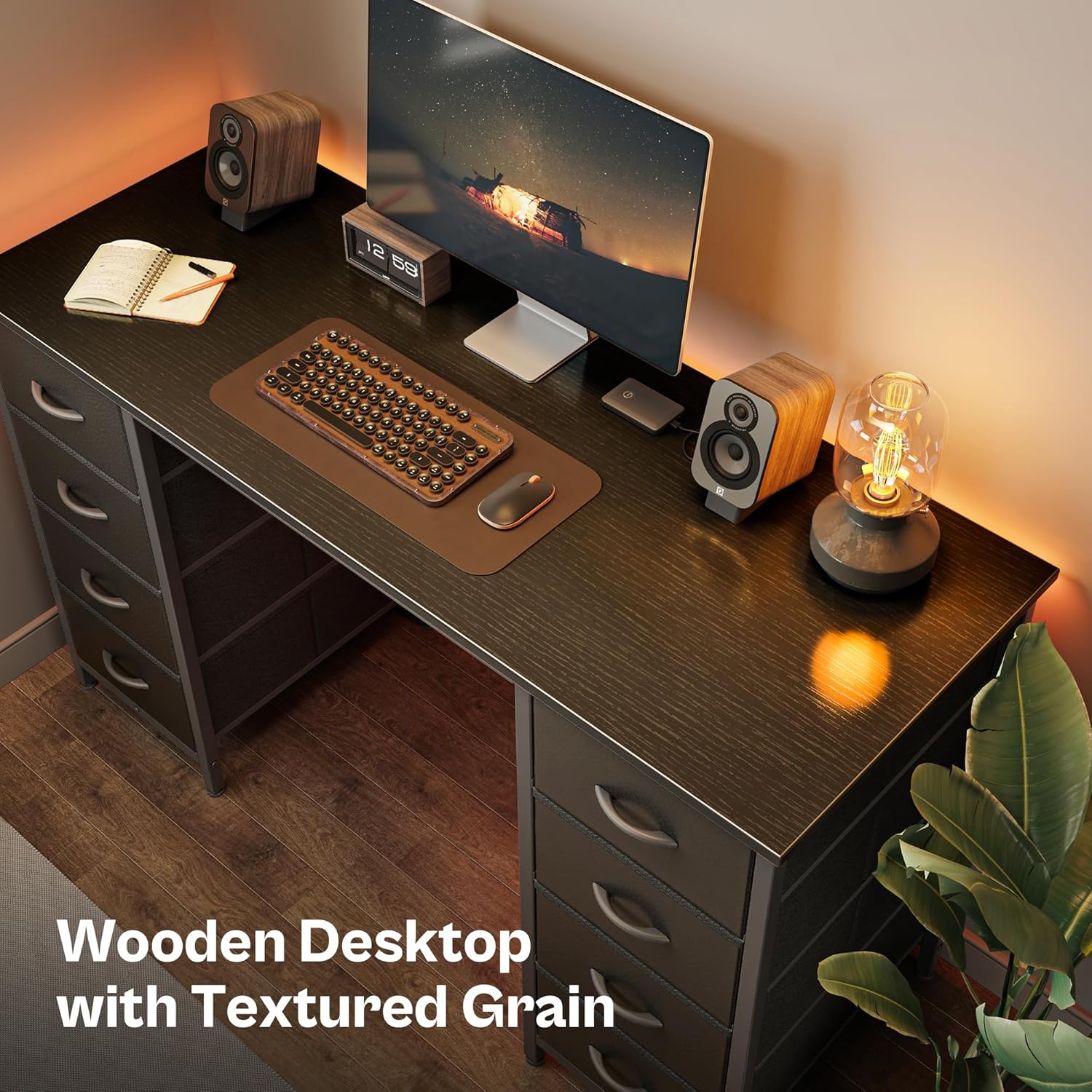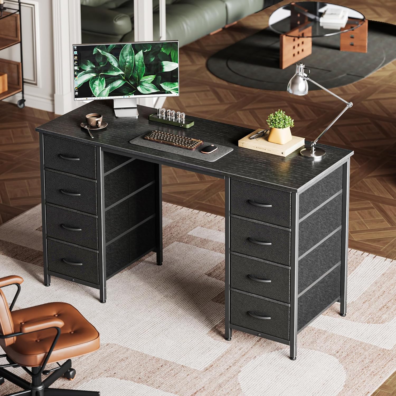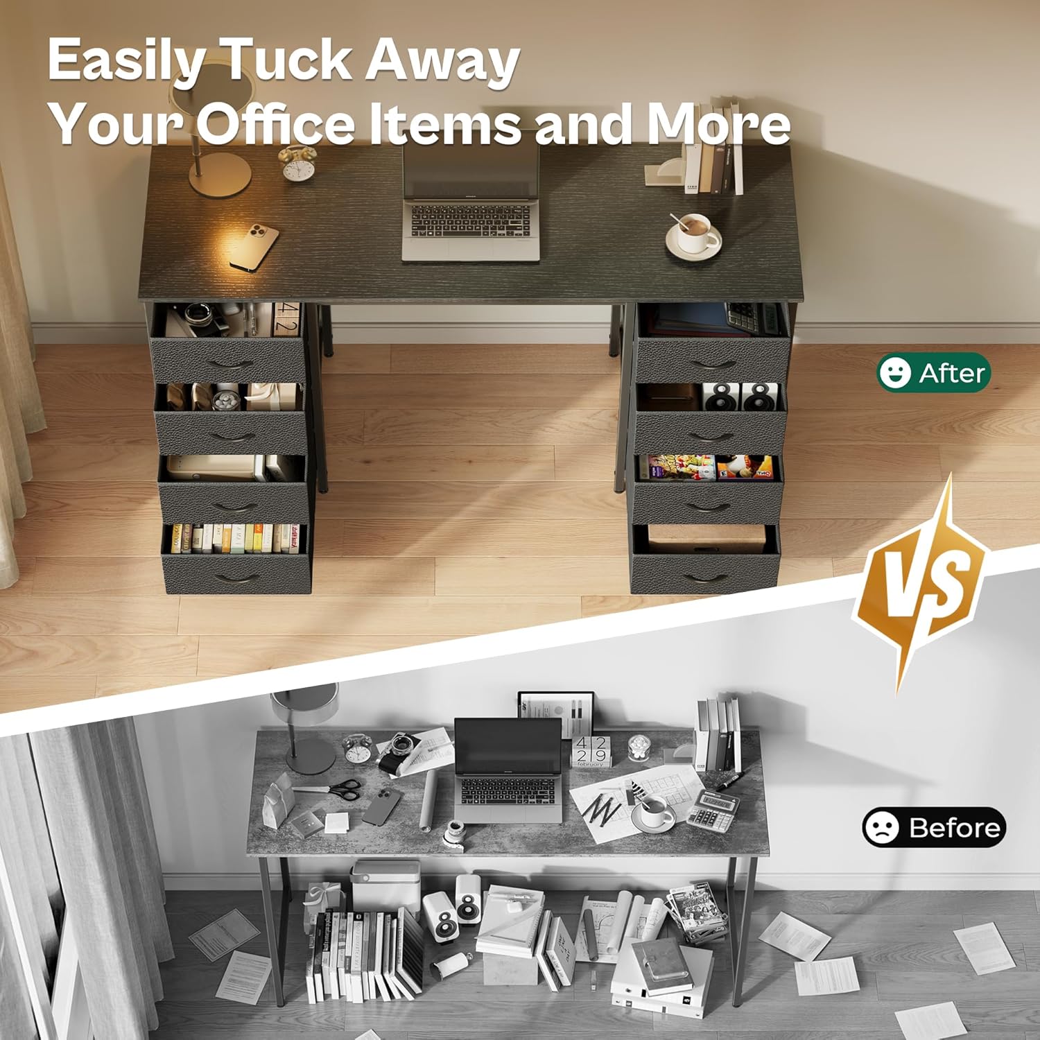 • 【Desk with 8 Fabric Drawers】Imagine a home office desk where everything has its place! Our desk with storage features 8 fabric drawers, giving you plenty of space to store files, office supplies, or even gaming gear. Lightweight and easy to pull out, these fabric drawers make organizing your workspace a breeze