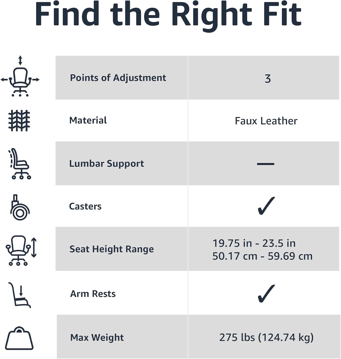 - Puresoft PU Padded Mid-Back Height Adjustable Office Computer Desk Chair with Armrest, 26"D x 23.75"W x 42"H, Black
