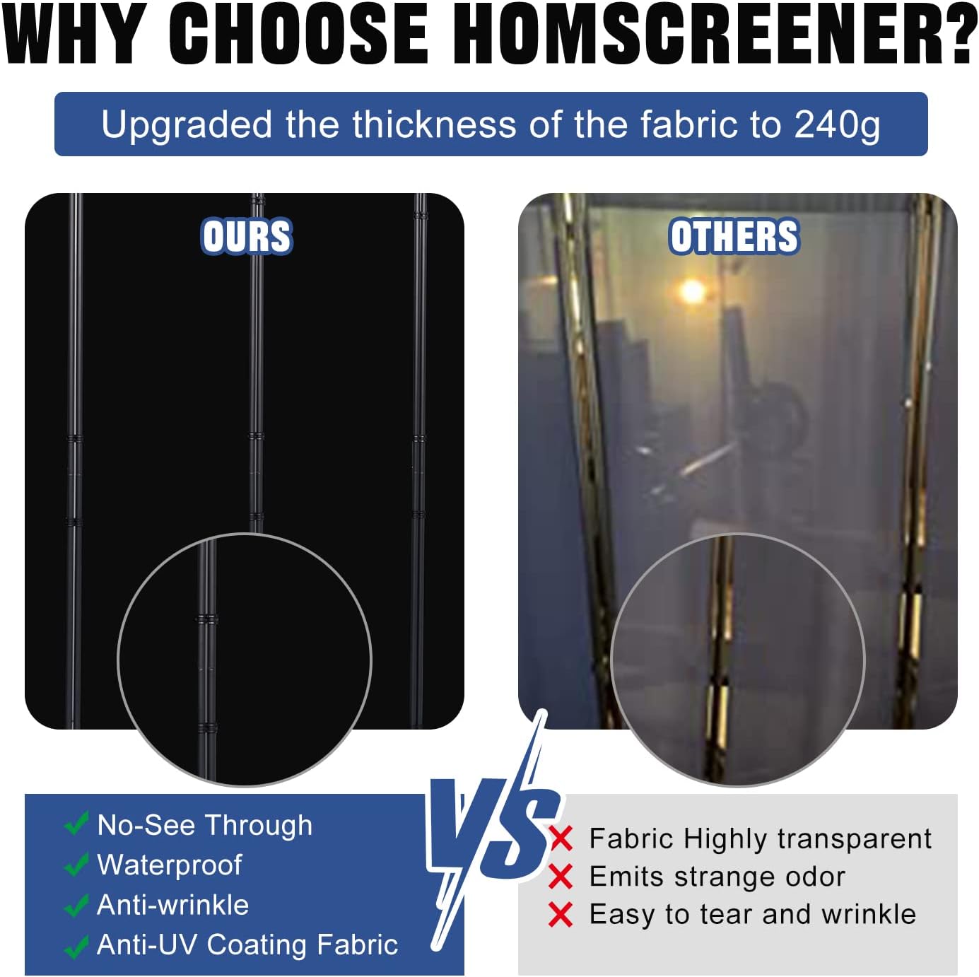 • Non-see-Through Privacy Screen: To improve the privacy of the room dividers, we have upgraded the fabric of the room divider screen to 240g polyester with PA coating, which maximizes the secrecy, wrinkle resistance, wear resistance and water resistance of the screen. It's also easy to clean and just wipe with water