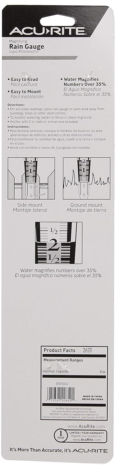 - AcuRite 5" Capacity Easy-to-Read Magnifying Rain Gauge, Acrylic (00850A3)