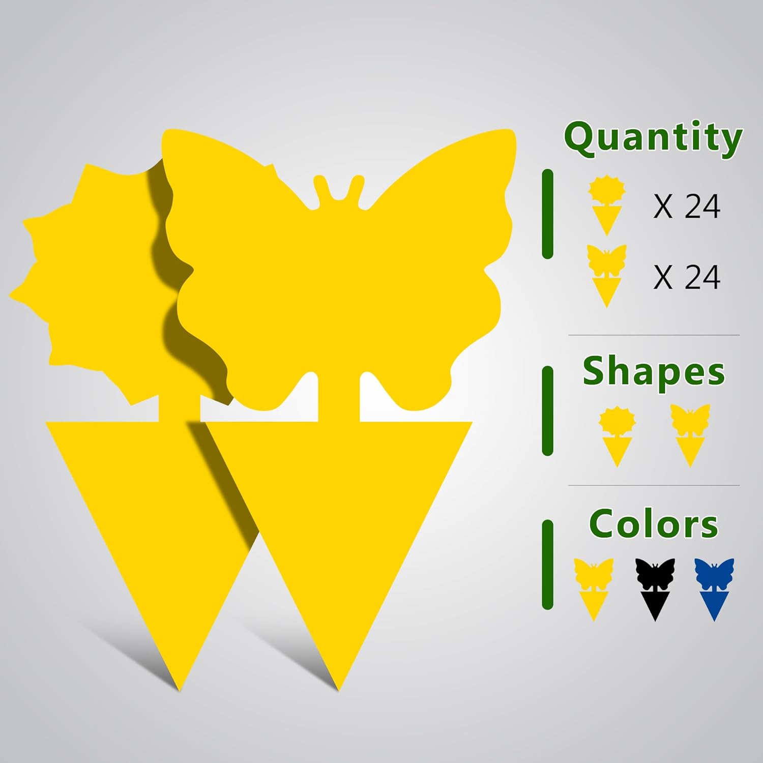 - Fruit Fly Traps: Fruit-fly and fungus gnat sticky traps are designed to effectively control and monitor populations of these nuisance pests. The traps utilize a sticky adhesive surface to catch and immobilize flies and gnats, capturing flying insects upon contact, preventing them from further infesting your home or garden.