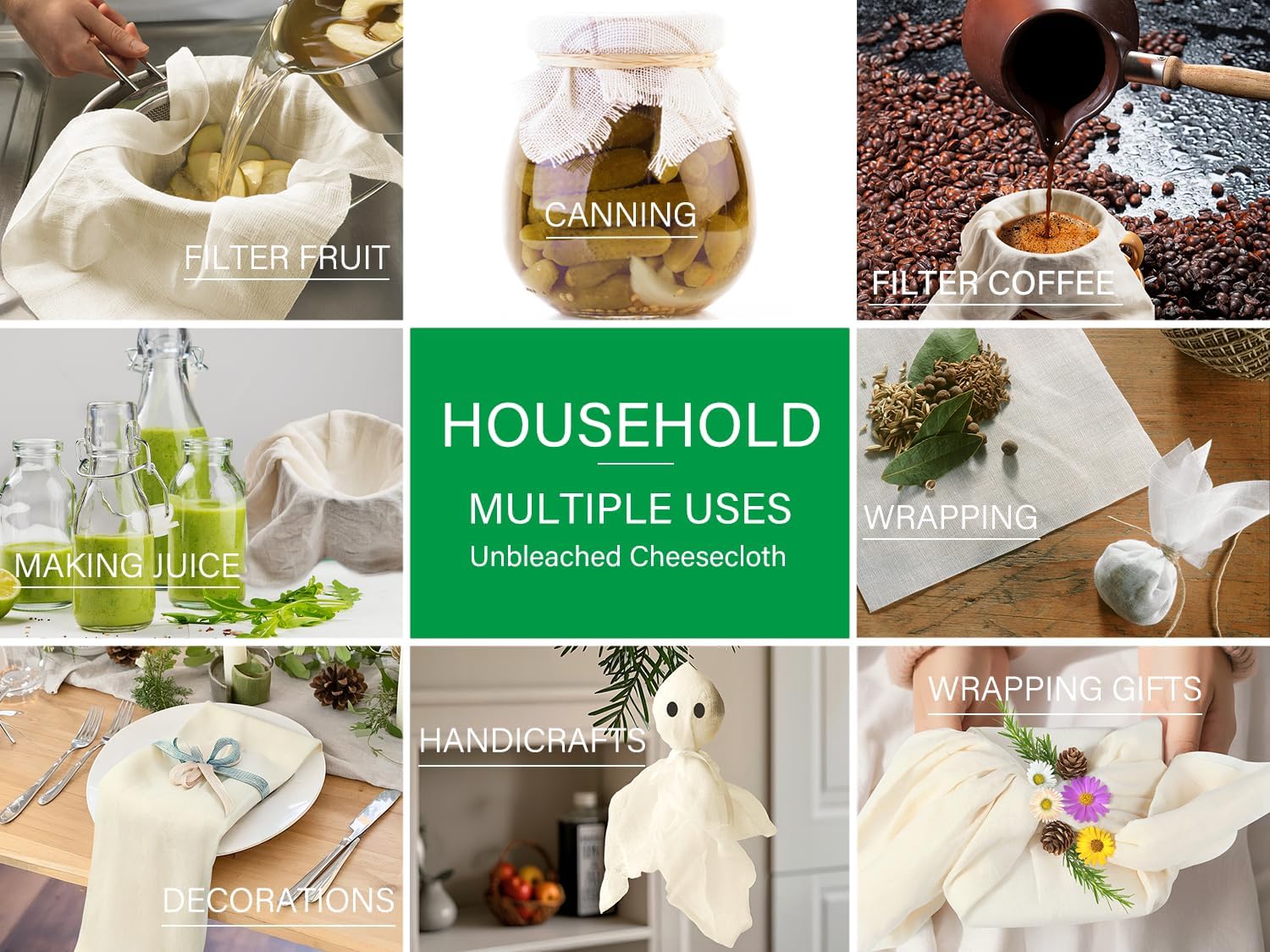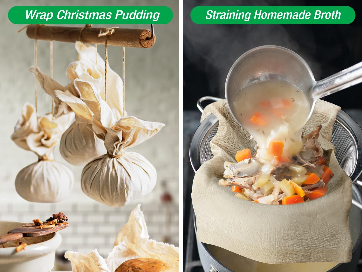 - Truly Chemical Free - Stuff poultry, wrap spices, craft customized projects, even use as cheesecloth table runner, all without plastic. Unbleached Organic Cotton - Strain almond milk, cold brew coffee, juice, and any other foods without worrying.