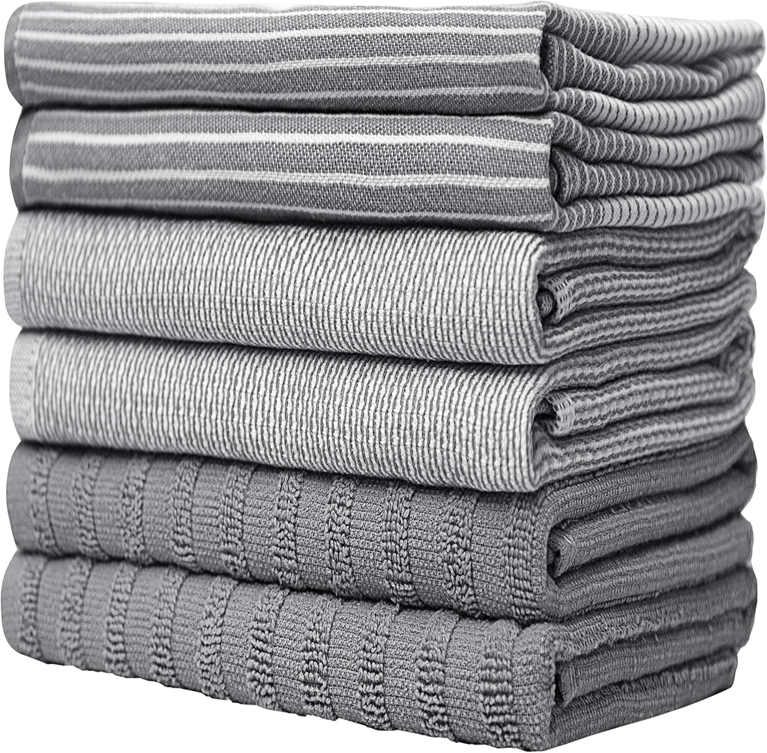- Premium Kitchen Towels (20”x 28”, 6 Pack) | Large Cotton Kitchen Hand Towel | Flat & Terry Dish Cloths | Highly Absorbent Tea Towels Set with Hanging Loop | Gray