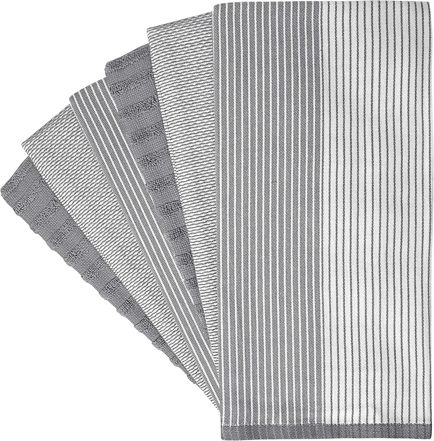- 6-PACK: Contains three different textures of towels, including a flat towel and terry towel. Great for drying dishes, cleaning kitchen countertops, wiping up spills, and more