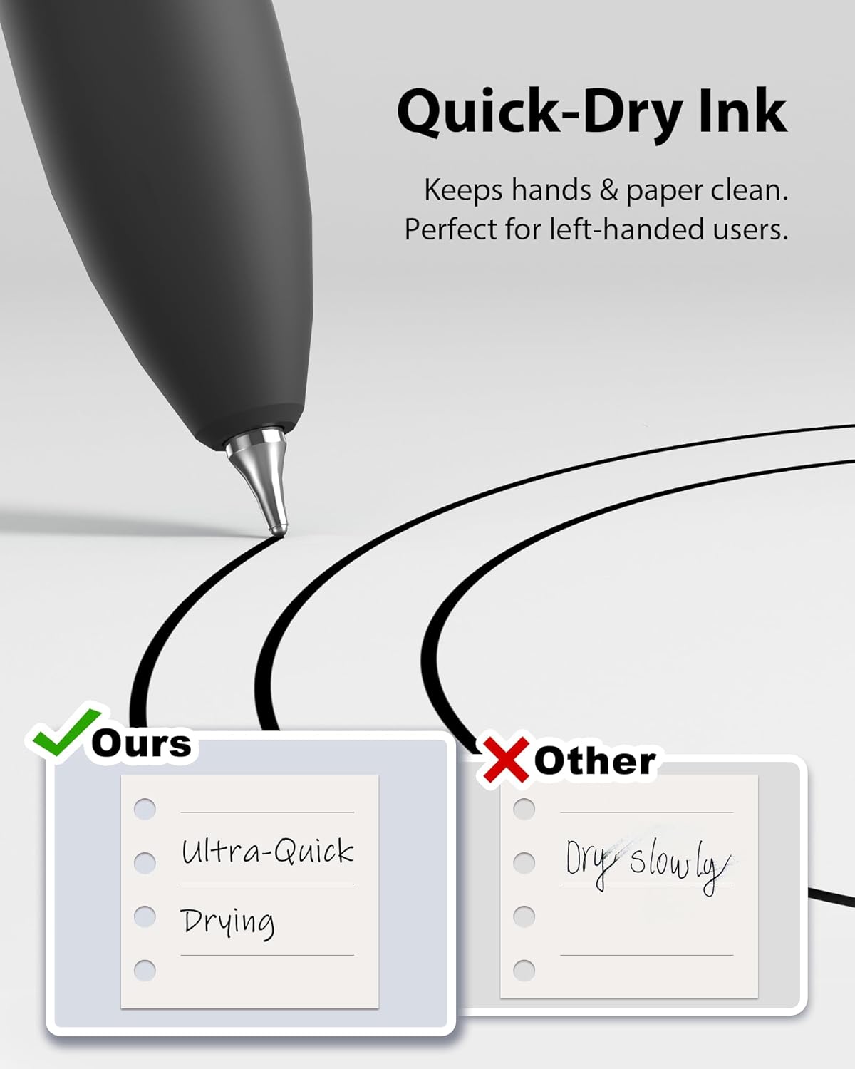 - Quick-Dry Long-Lasting Ink:0.7mm black ink can slide effortlessly, dry immediately, & is not easily dirty. It has a high-capacity reservoir (up to 1300 meters), which is very suitable for left-handed & right-handed users.