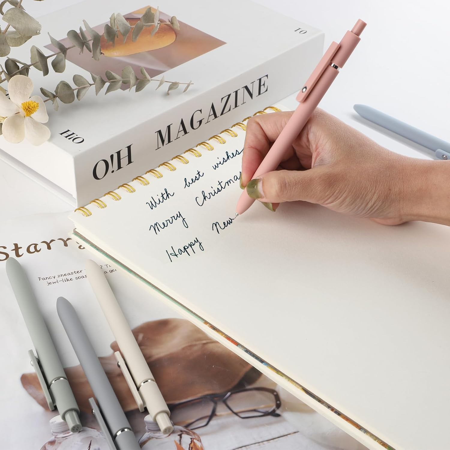 - 0.5mm Quick-Drying Ink Pens:0.5mm Retractable Rolling Ball Gel Pens with fade-resistant ink, there’s no need to worry about getting ink on your hands or desk, as it won’t fade, bleed, or smudge. Note: After using the gel pen, it is suggested to lay the pen flat or the nib face up. This helps protect the pen tip