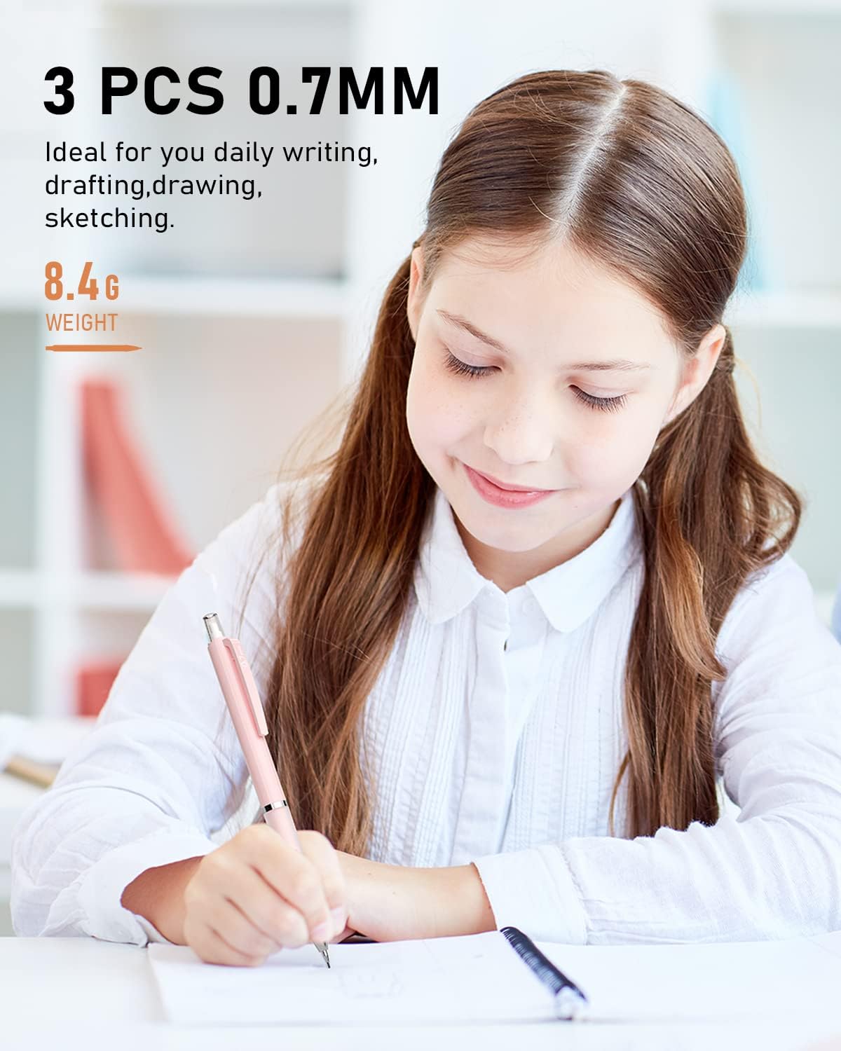 - Comfortable Soft Grip: Designed for beginner writers, our 0.7mm mechanical pencils have a soft rubber grip that’s comfortable and non-slip, helping kids write neatly without hand fatigue. The lightweight plastic body and easy-press mechanism make them ideal for preschool and elementary students.
