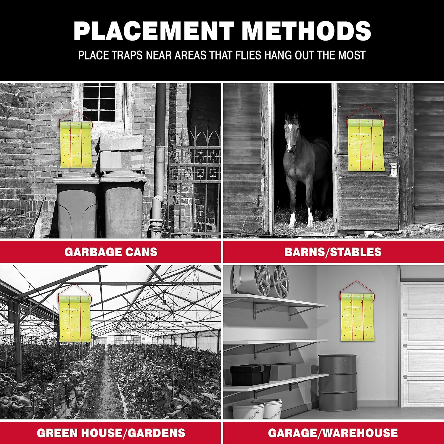 - TOTAL COVERAGE: Use the mosquito trap indoor residential, commercial or industrial buildings, outdoors in barns, animal farms or anywhere rodenticides or snap traps are undesirable or prohibited. The one-side adhesive tape fly paper roll can be used for gnat traps, as a stable fly trap, or any other flying bug trap. Place the insect trap at least 4 feet above the ground in high infestation areas to manage pests.