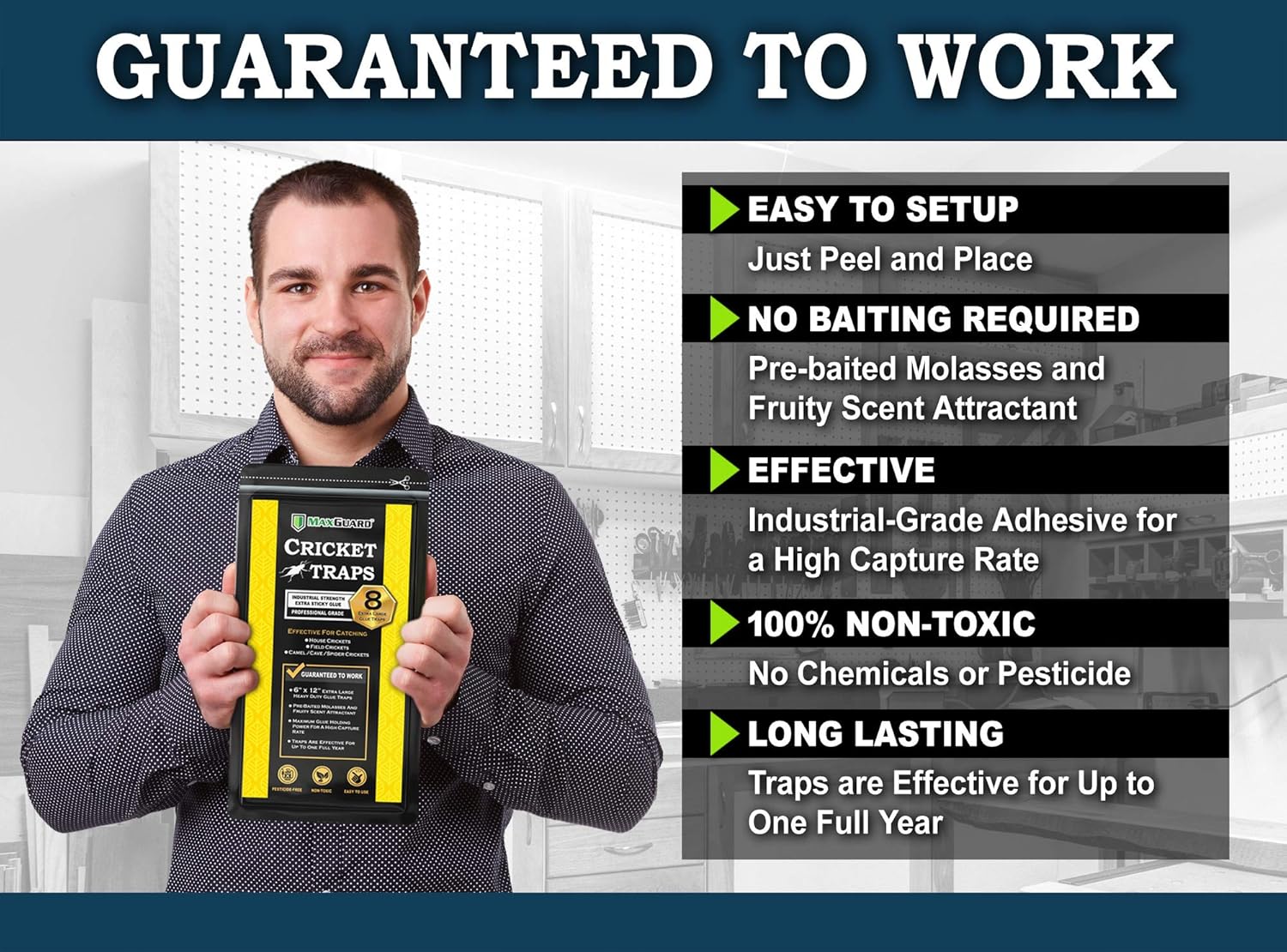 - MaxGuard Extra Large Cricket Traps (8 Traps) | Non-Toxic Extra Sticky Glue Board Pre-Baited Cricket Attractant Trap & Kill House Crickets, Insects, Spiders, Bugs