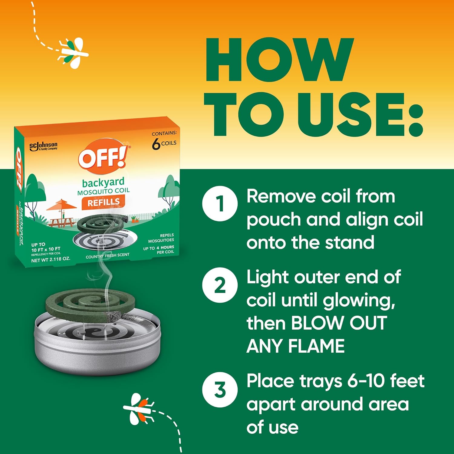- OFF! Backyard Mosquito Repellent Coil Refills, Perfect for Outdoor Patios Country Fresh Scent, 6 Count