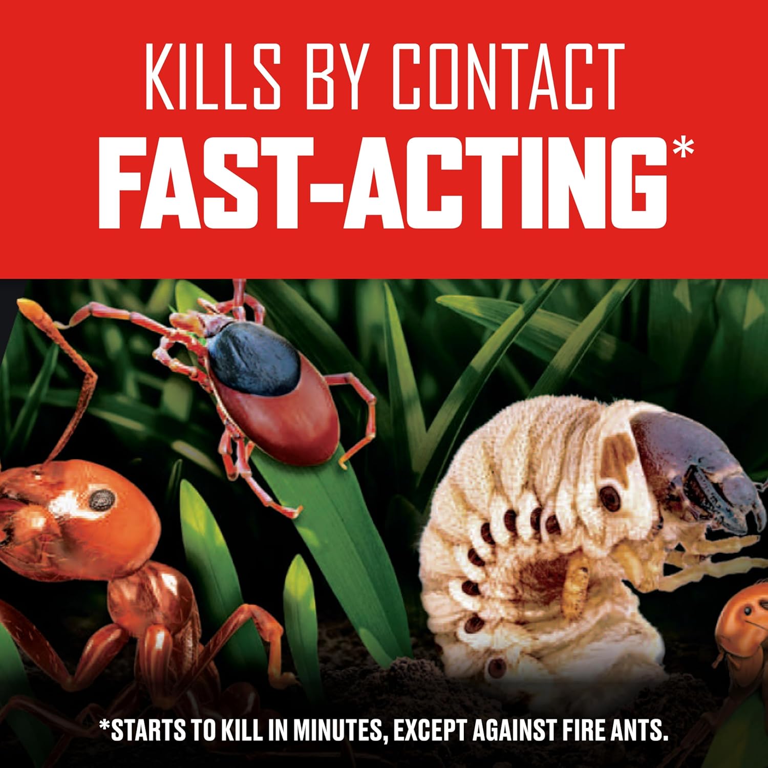 Kills on contact: Targets insects like ants, fleas, ticks, spiders, grubs, and armyworms