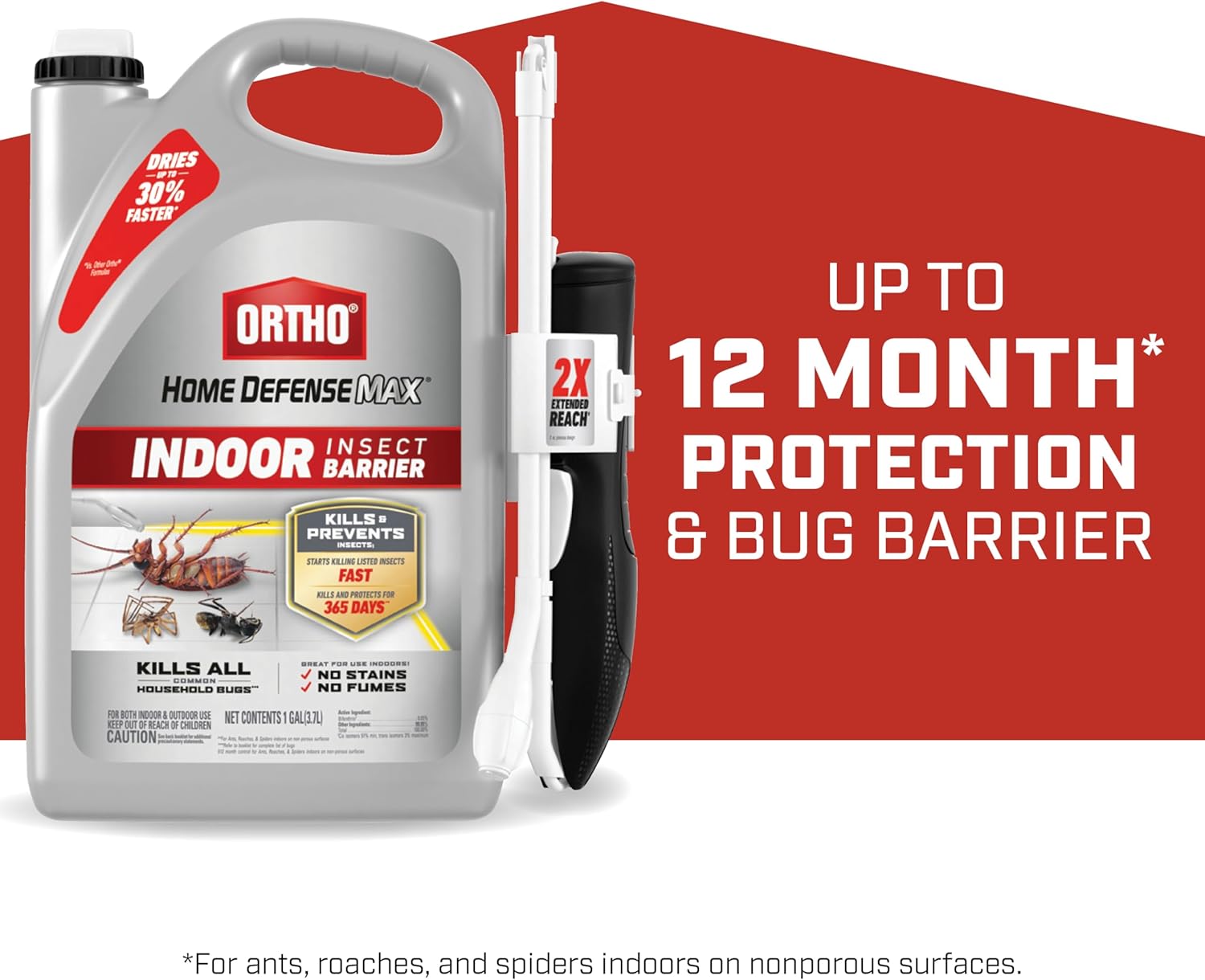 - Ortho Home Defense Max Indoor Insect Barrier with Extended Reach Comfort Wand, Kills Ants, Roaches, Spiders, Fleas and Ticks, 1 gal.