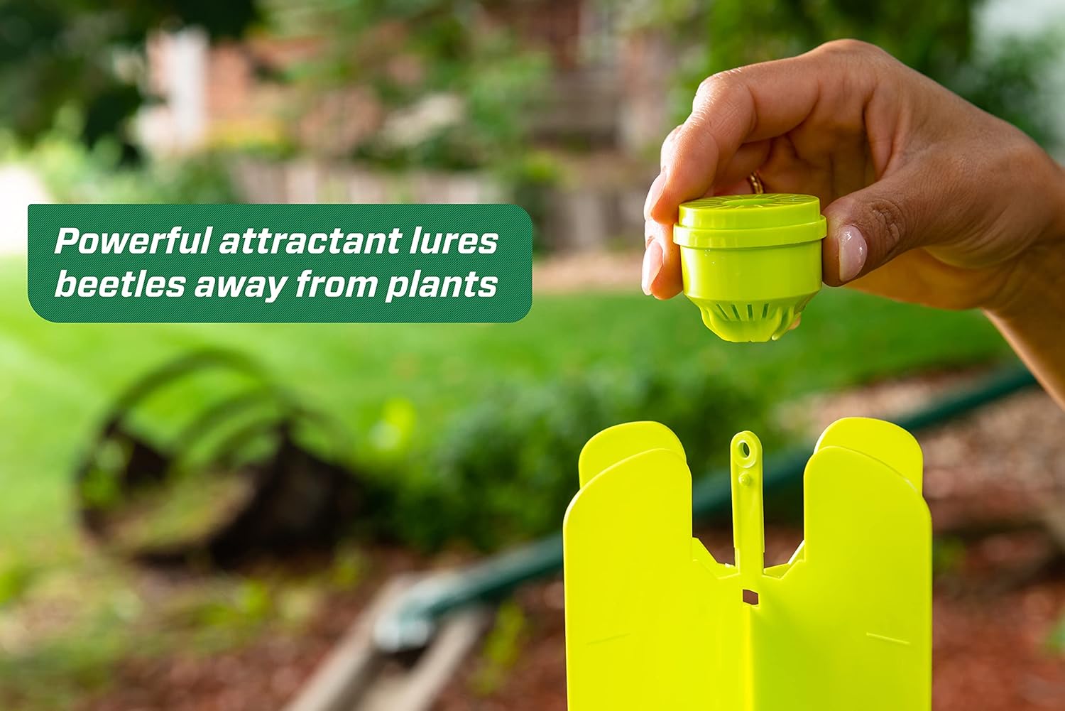 - Lures Beetles Away from Plants – This trap should be placed at least 30 feet from ornamental plants to lure beetles away from the areas where they are causing damage.