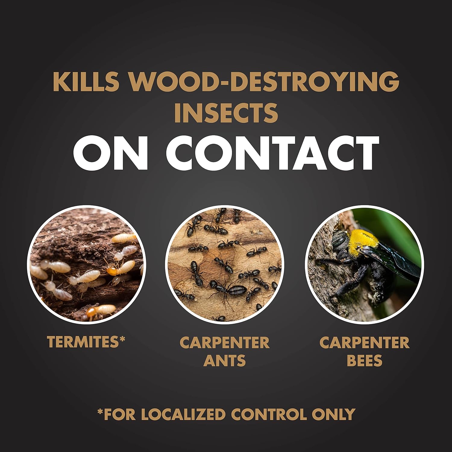 Kills on contact: Instantly eliminates termites, carpenter ants, and other listed pests