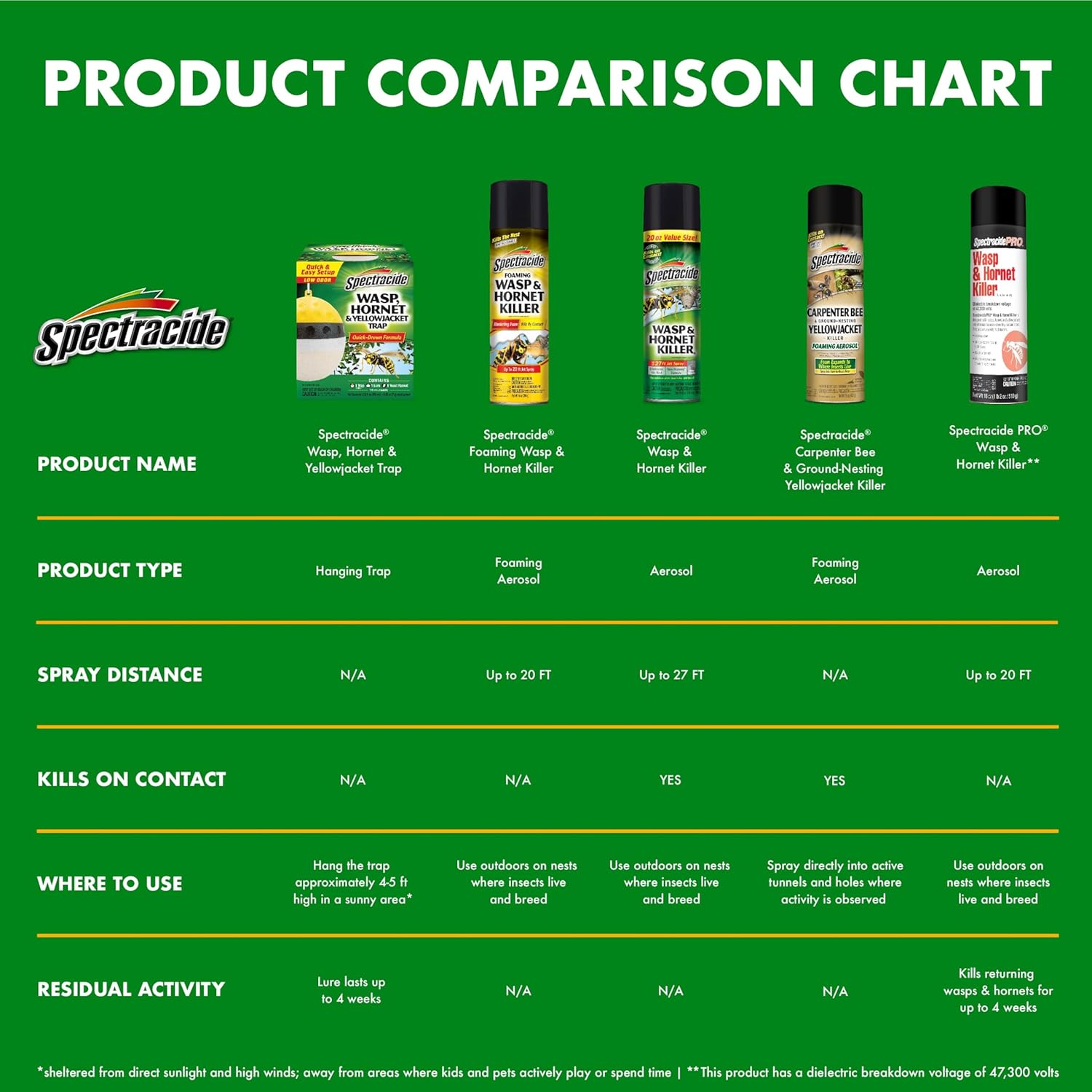 - FAST KNOCKDOWN: Kills wasps, hornets & yellow jackets.