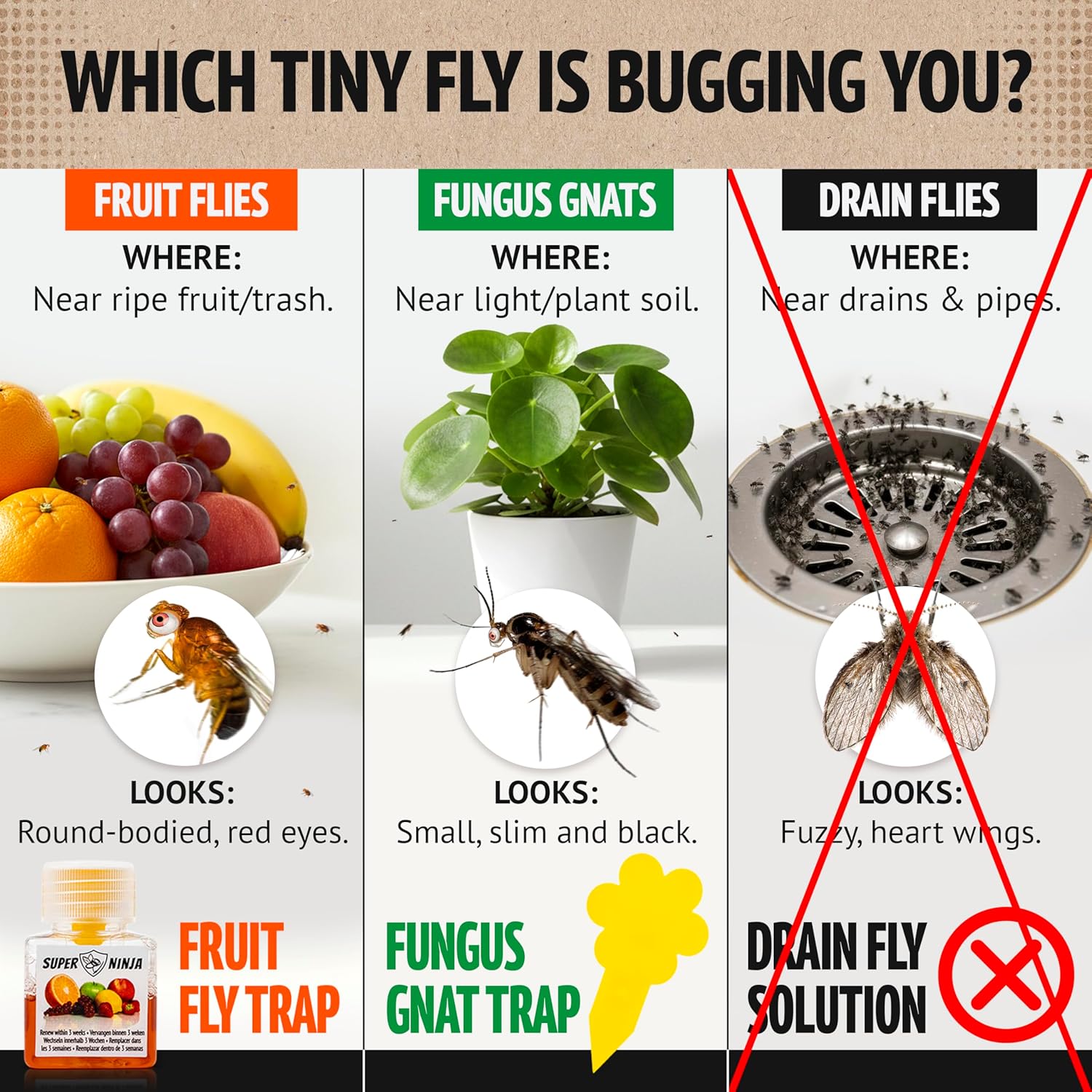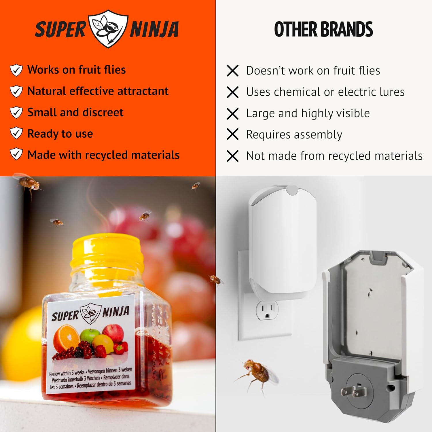 - Super Ninja Fruit Fly Traps for Indoors - 4 Pack, Highly Effective Fruit Fly Catcher for Indoor Use for Home & Kitchen, Up to 3 Weeks of Performance per Bottle, Kid & Pet Friendly