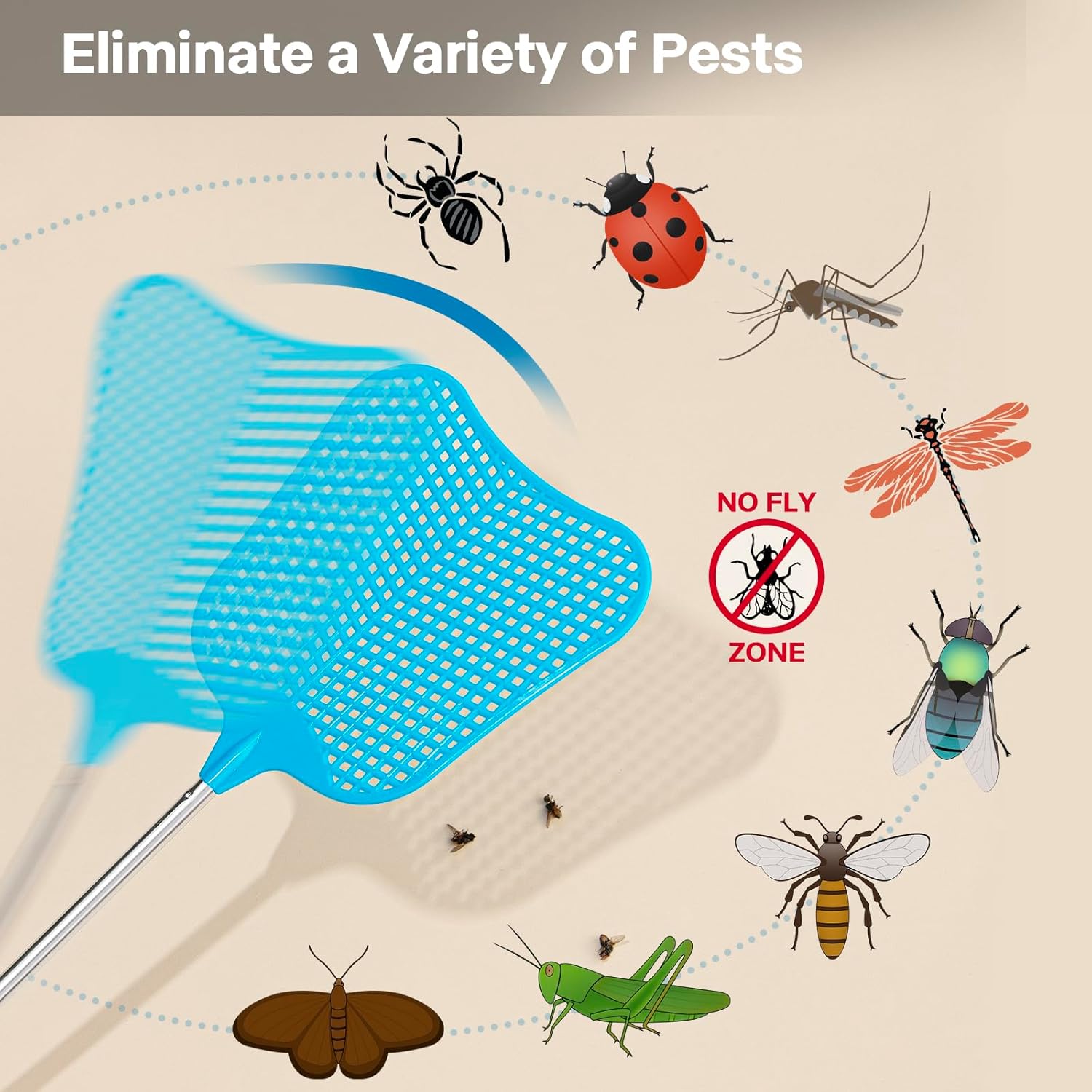 - Telescopic Fly Swatter, Begonia Fly Swatter for Indoors,Manual Plastic Flyswatter Heavy Duty with Stainless Steel Telescopic Handle (3 Pack)