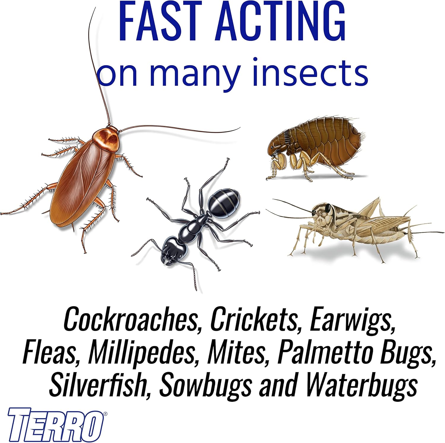- Say Goodbye to Bugs - Kills ants, fire ants, roaches, fleas, crickets, earwigs, millipedes, mites, palmetto bugs, silverfish, sow bugs, and more