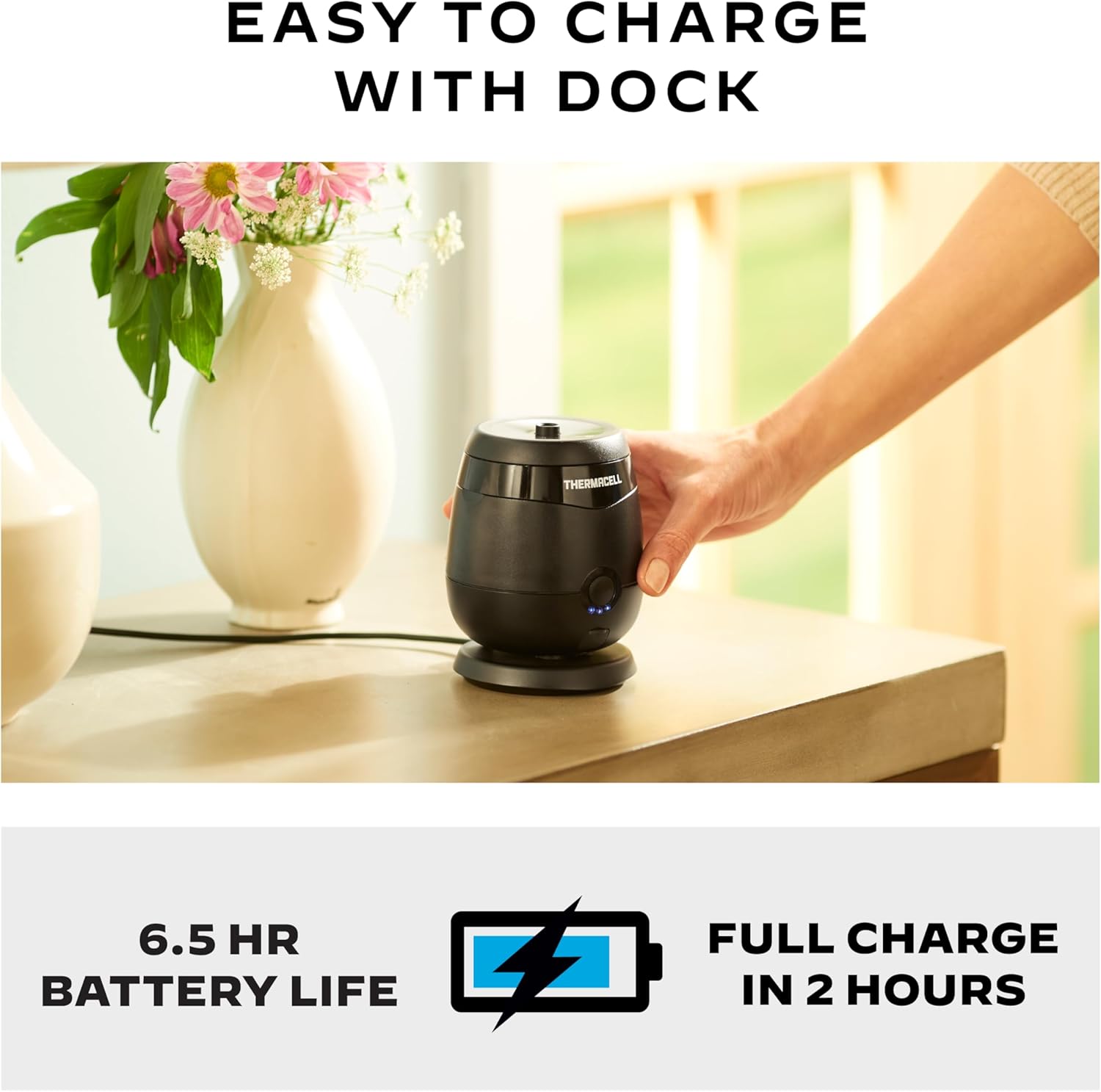Fast-Charging & Rechargeable: Features a 6.5-hour rechargeable lithium-ion battery and a fast-charging dock to keep your Repeller ready to go