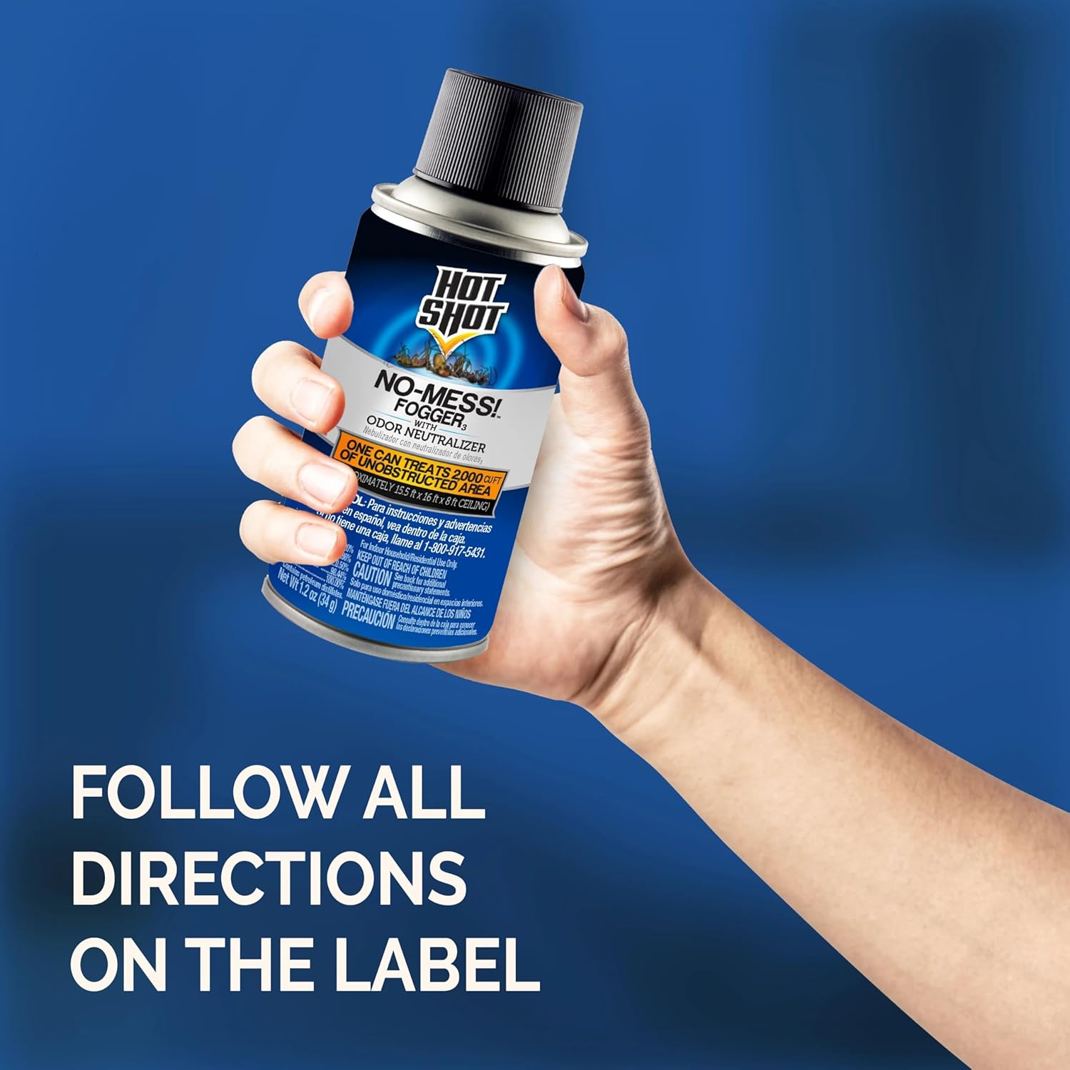 - KILLS ON CONTACT: Hot Shot No-Mess! Fogger With Odor Neutralizer kills on contact – and keeps killing for up to 6 weeks.