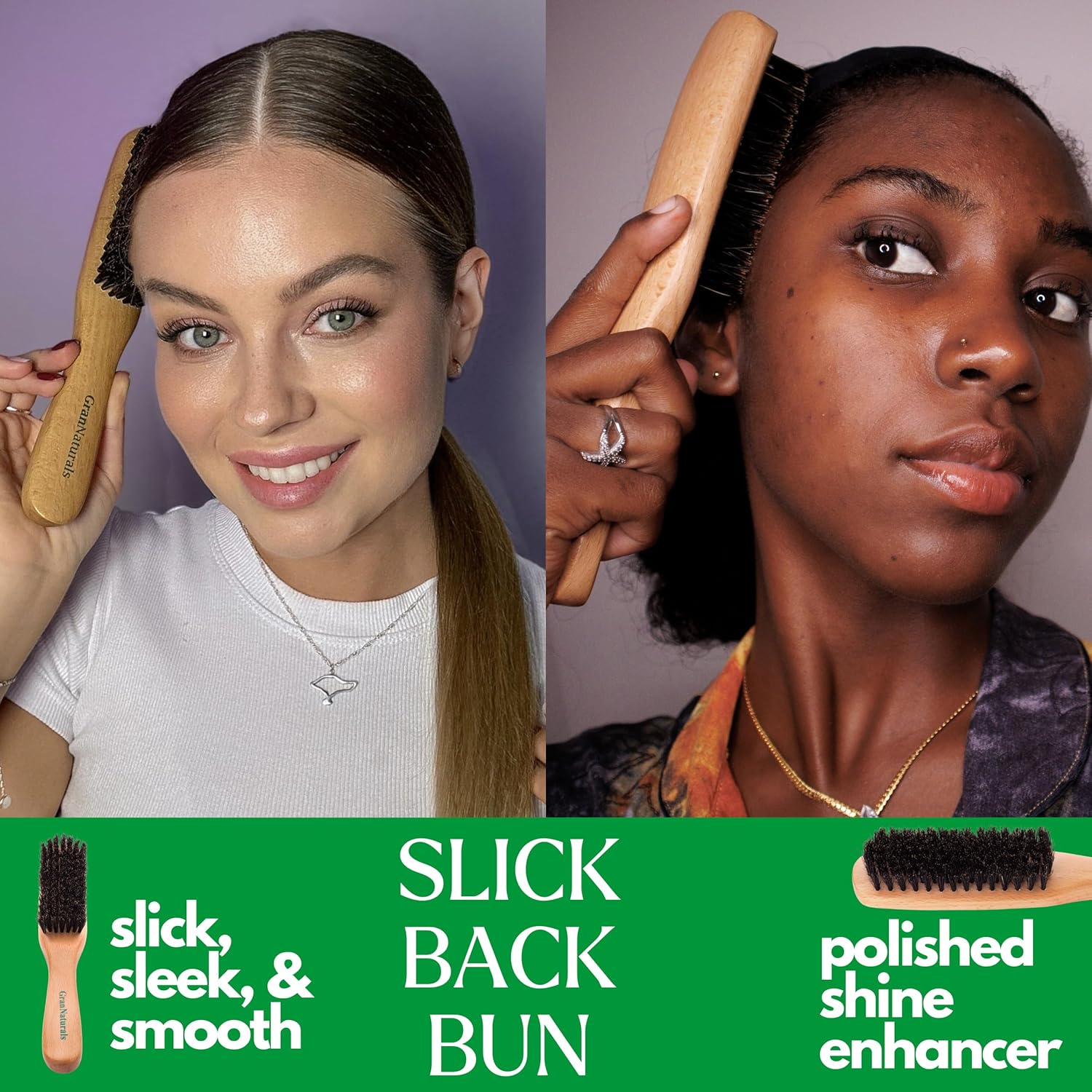 - GranNaturals Boar Bristle Slick Back Hair Brush - Soft/Medium Smoothing Hairbrush to Style, Polish, & Lay Hair Down Flat to Create a Sleek Frizz Free Hairstyle for Women and Men - Wooden Handle