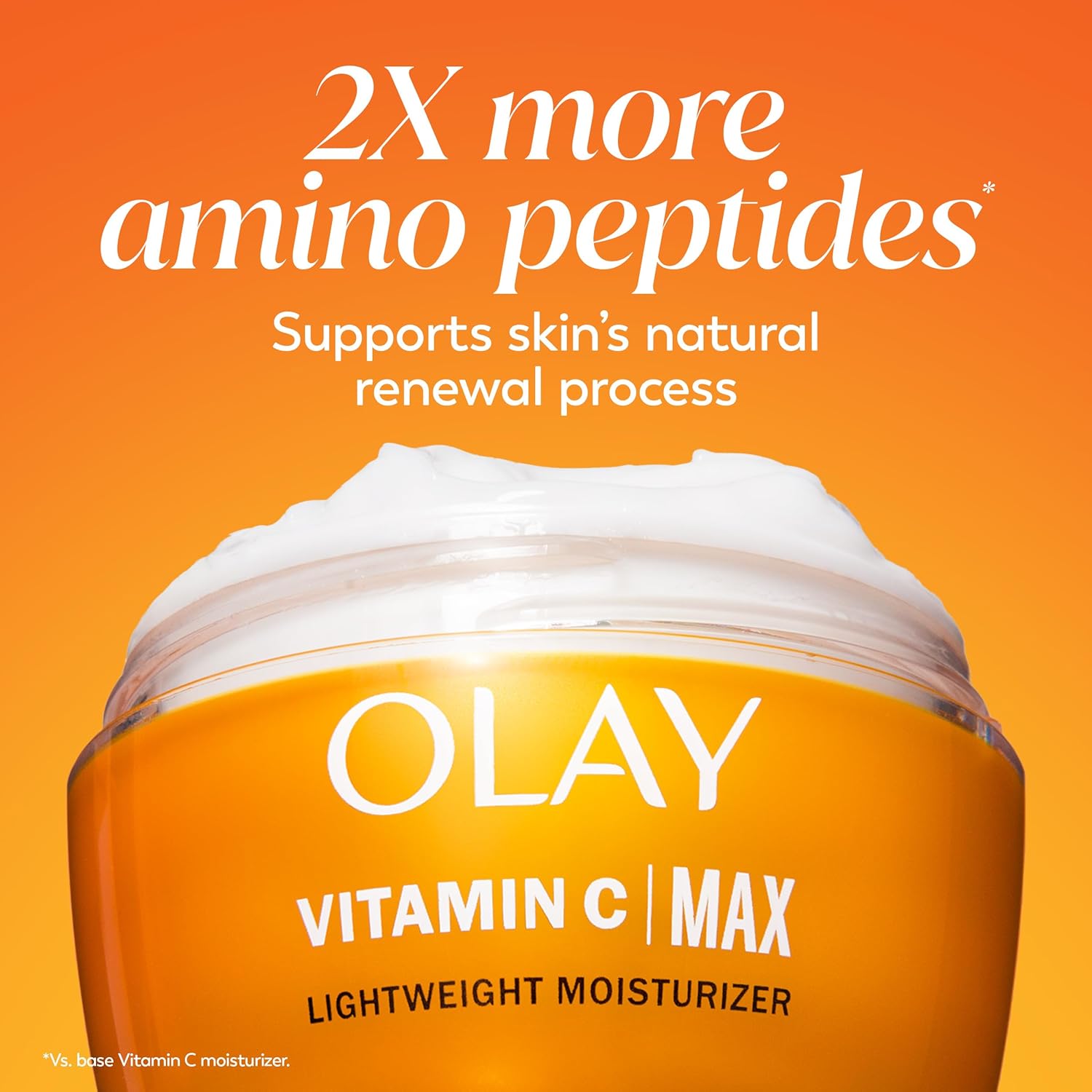 - Olay Vitamin C MAX Face Moisturizer, Brightening Cream for Women, Hydrating, Evens Tone, Dark Spot & Hyperpigmentation Reduction, Glowing Skin Care - Niaciniamide, Peptides 1.7 Oz
