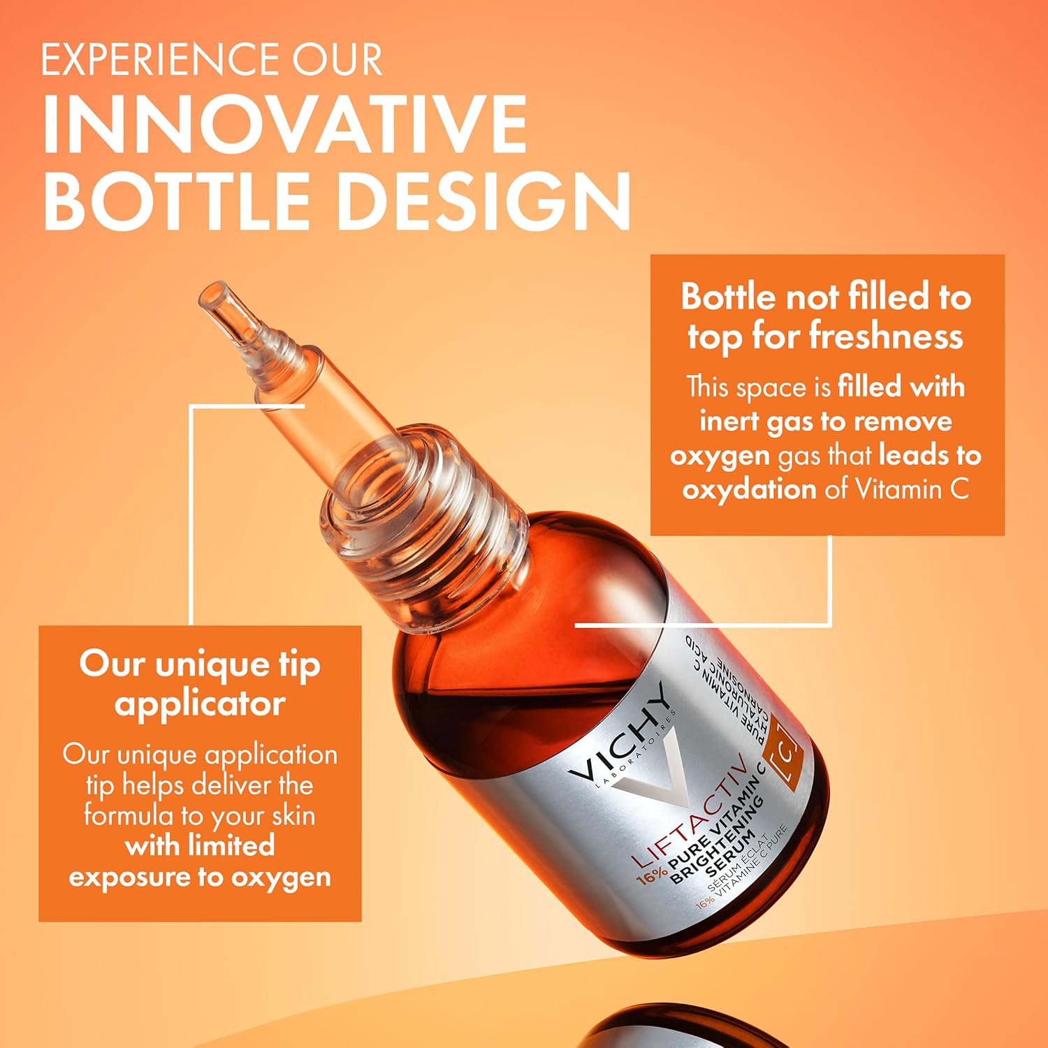 - Vichy LiftActiv Vitamin C Serum For Face, Brightening Serum With Pure Vitamin C + Hyaluronic Acid + Vitamin E, Reduces Fine Lines, Smooths Skin Texture, Improves Radiance, Anti Aging