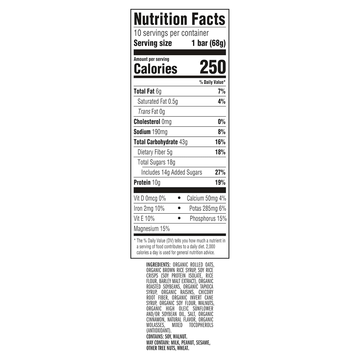 - OATMEAL RAISIN GOODNESS: Includes one 10-pack box of Oatmeal Raisin Walnut energy bars made with plump raisins, cinnamon, and walnuts for home-baked cookie flavor on-the-go (packaging may vary)