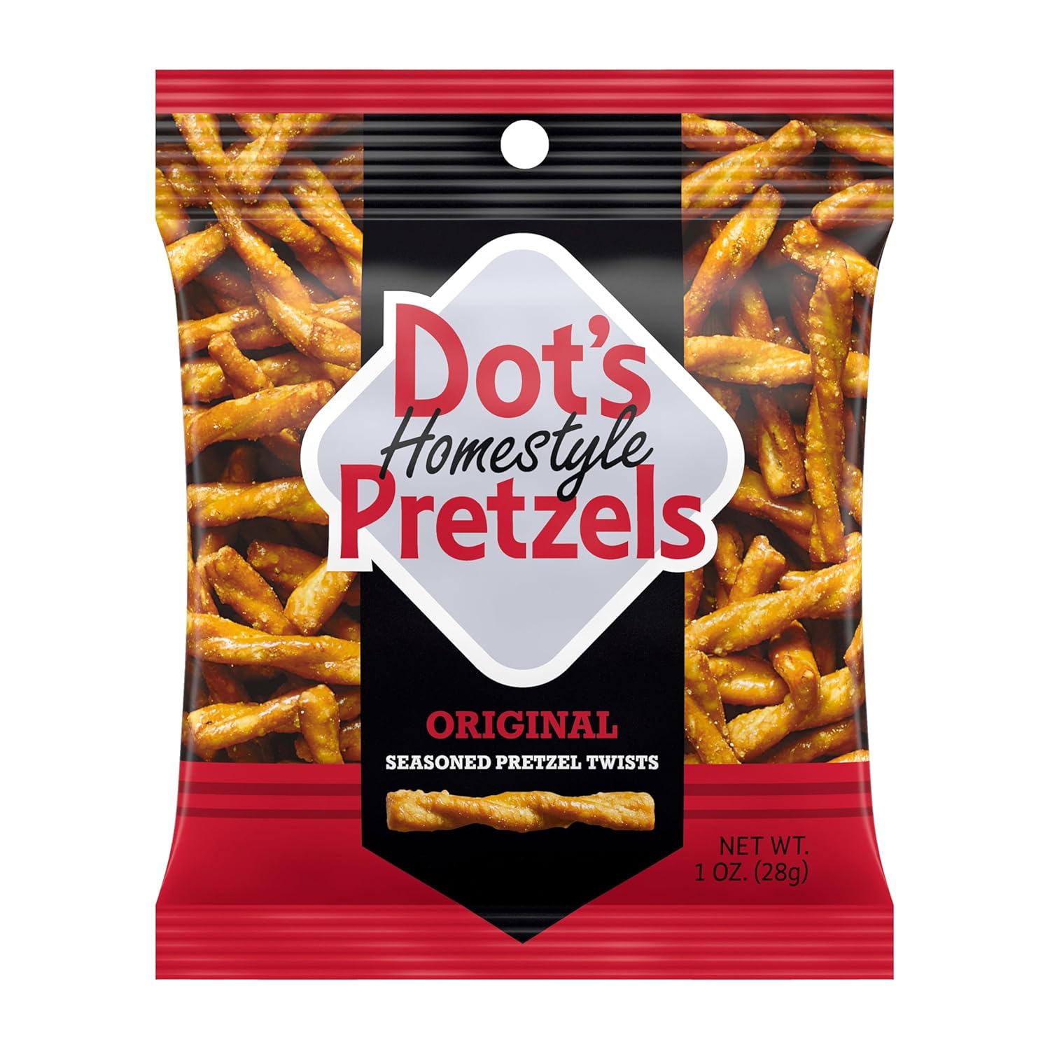 - Dot's Pretzels provides a satisfying crunch with a twist! Specially seasoned with a blend of bold spices, our pretzels are great for kids lunches, watching the big game, or just a snack for yourself