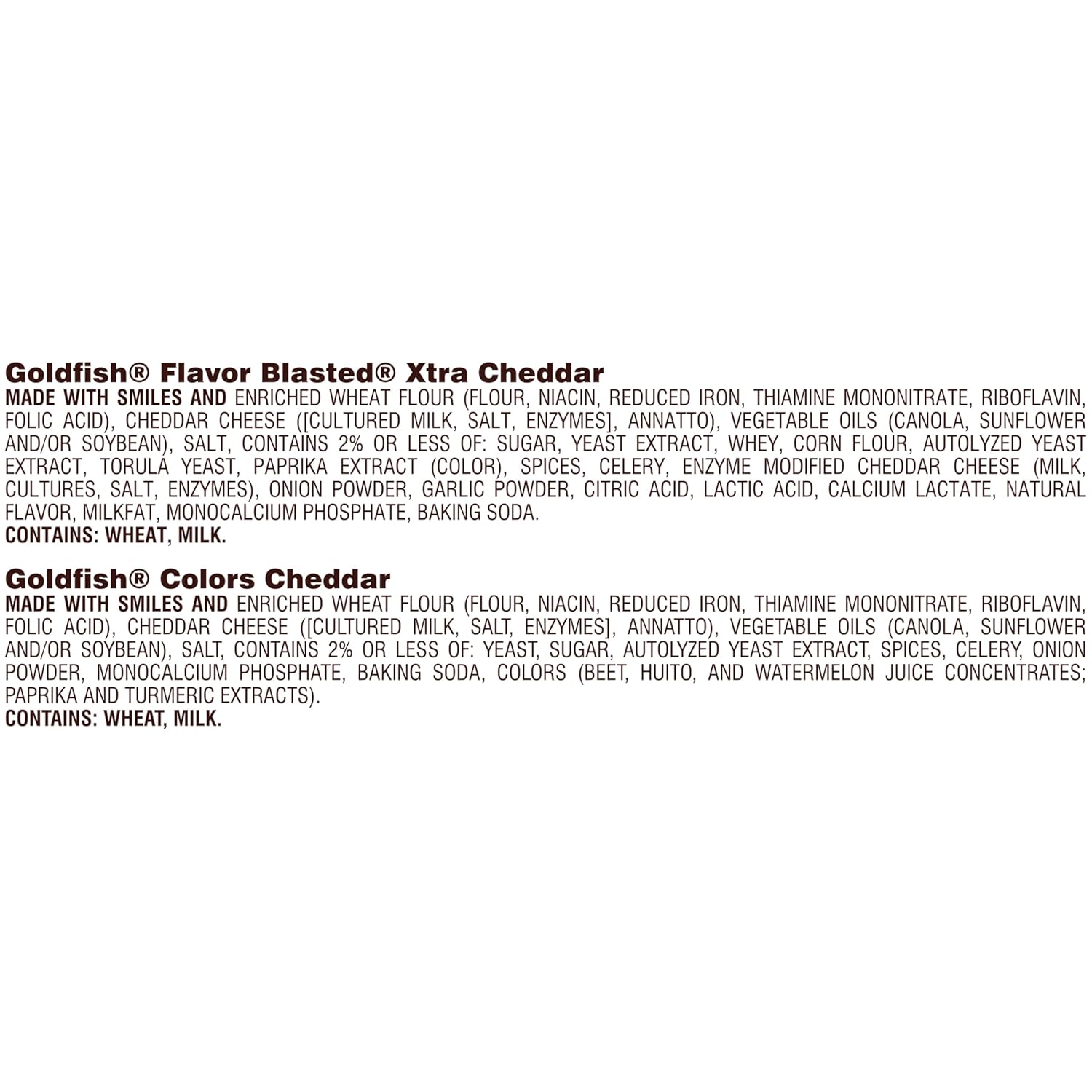 - Goldfish Dynamic Duo Variety Pack, Colors Cheddar & Flavor Blasted Xtra Cheddar, Snack Packs, 20 Ct