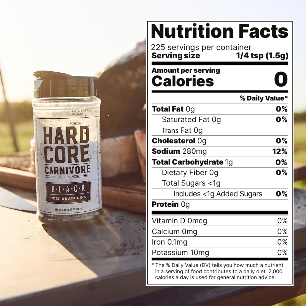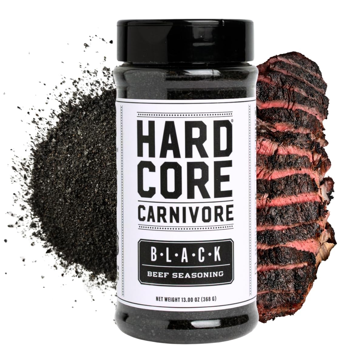 - Hardcore Carnivore Black: Activated Charcoal Meat Seasoning Rub (13 oz Shaker) Texas-Made, Blend for Steak, Brisket, Burgers, BBQ, Grilling and Smoking