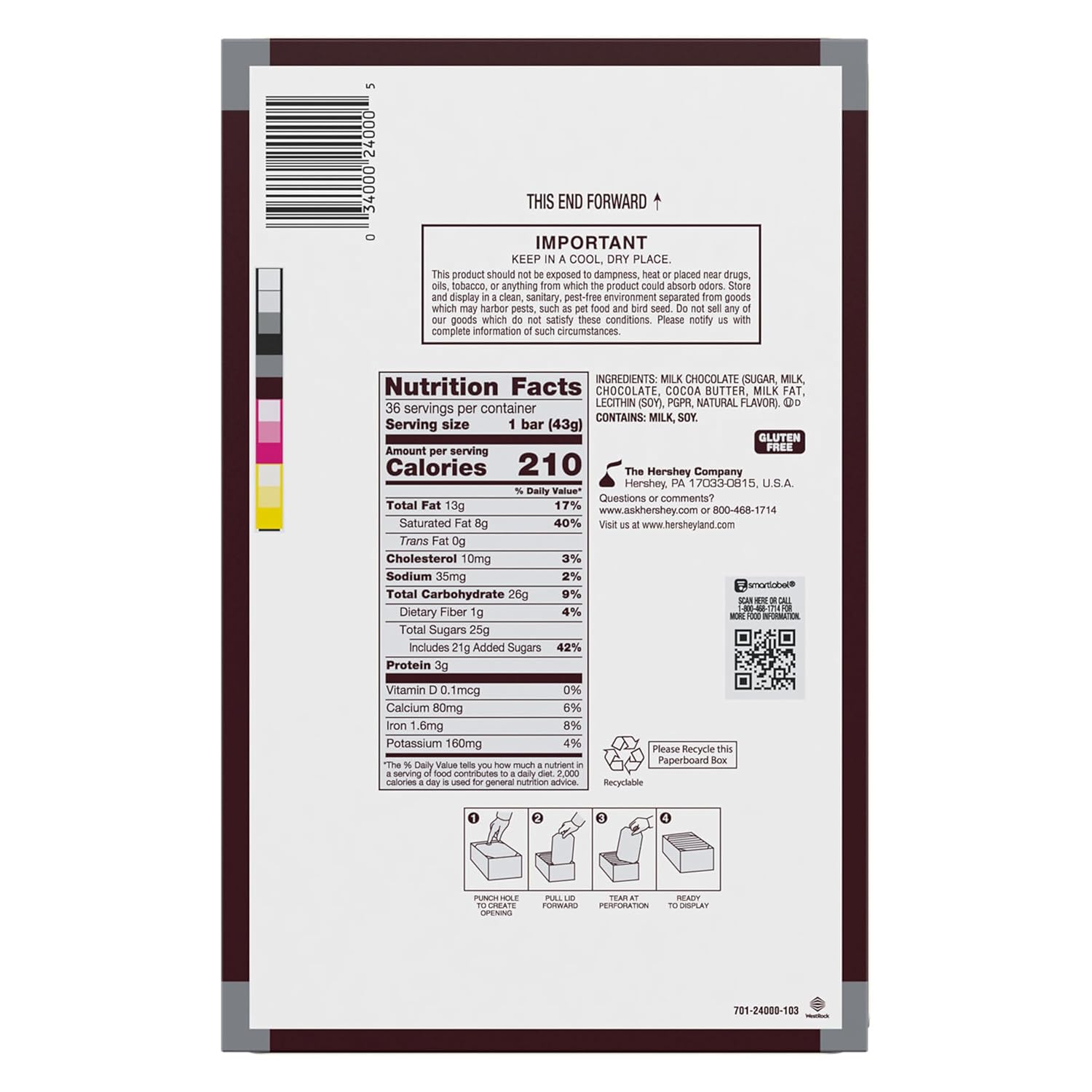 - HERSHEY'S Milk Chocolate Candy Bars, 1.55 oz (36 Count)