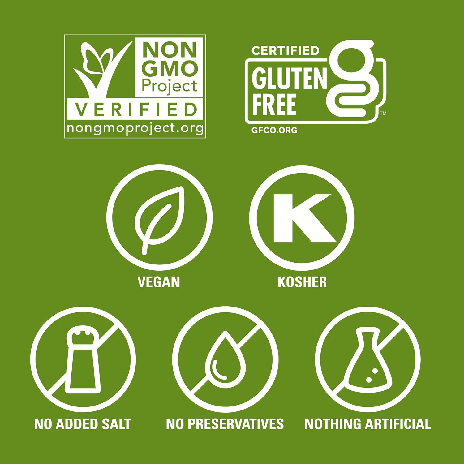 - Project Verified Non-GMO, No Artificial Ingredients, Gluten Free, Vegan, Certified Kosher