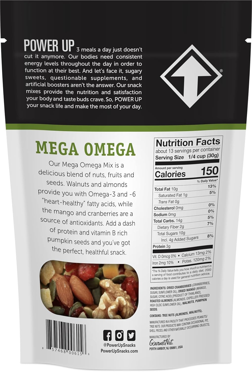 - Power Up Trail Mix, Mega Omega Trail Mix, Non-GMO, Vegan, Gluten Free, No Artificial Ingredients, Gourmet Nut, 14 Ounce Bag
