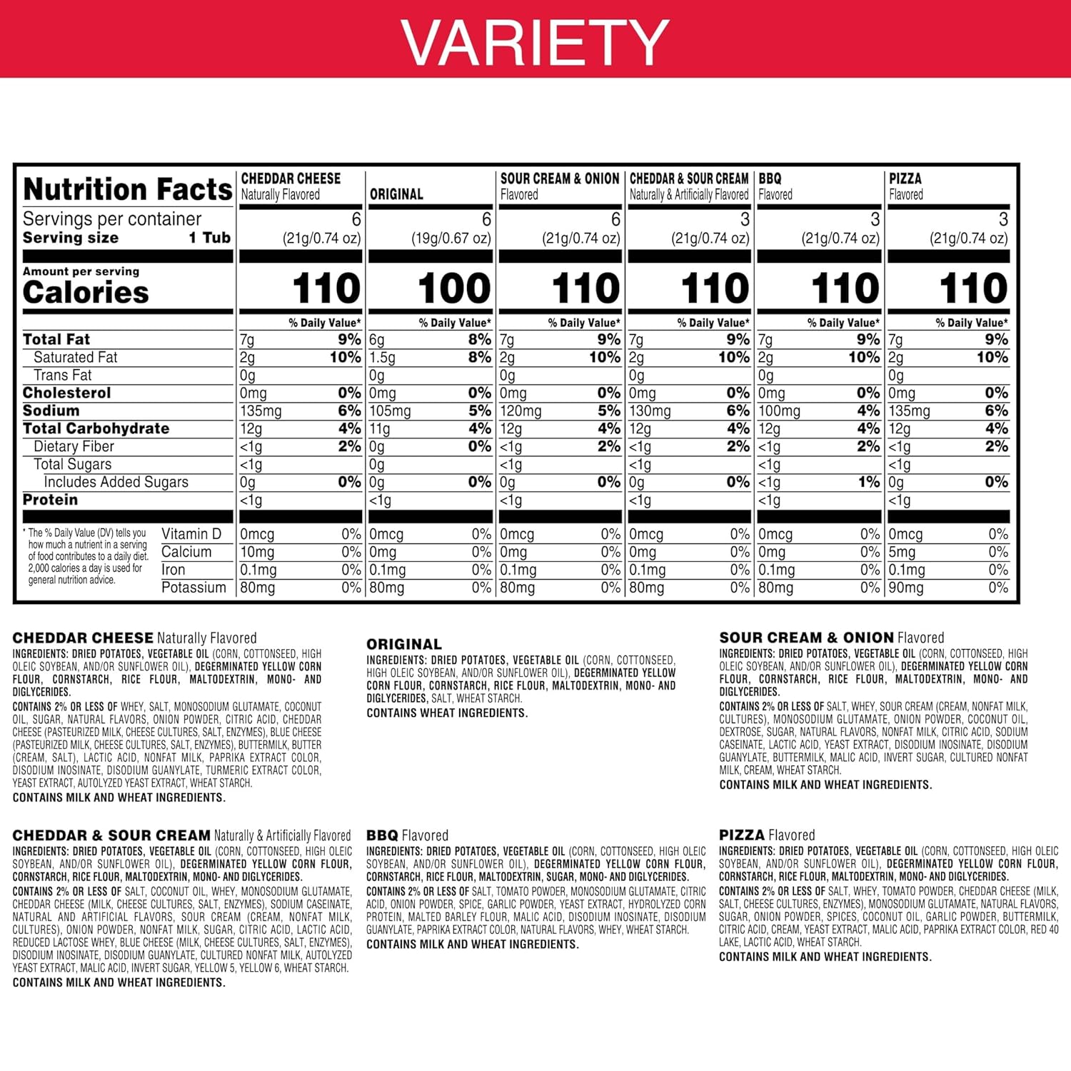 - The original, stackable potato crisps chips with savory saltiness from edge to edge; Variety pack includes favorites like Original and Cheddar Cheese