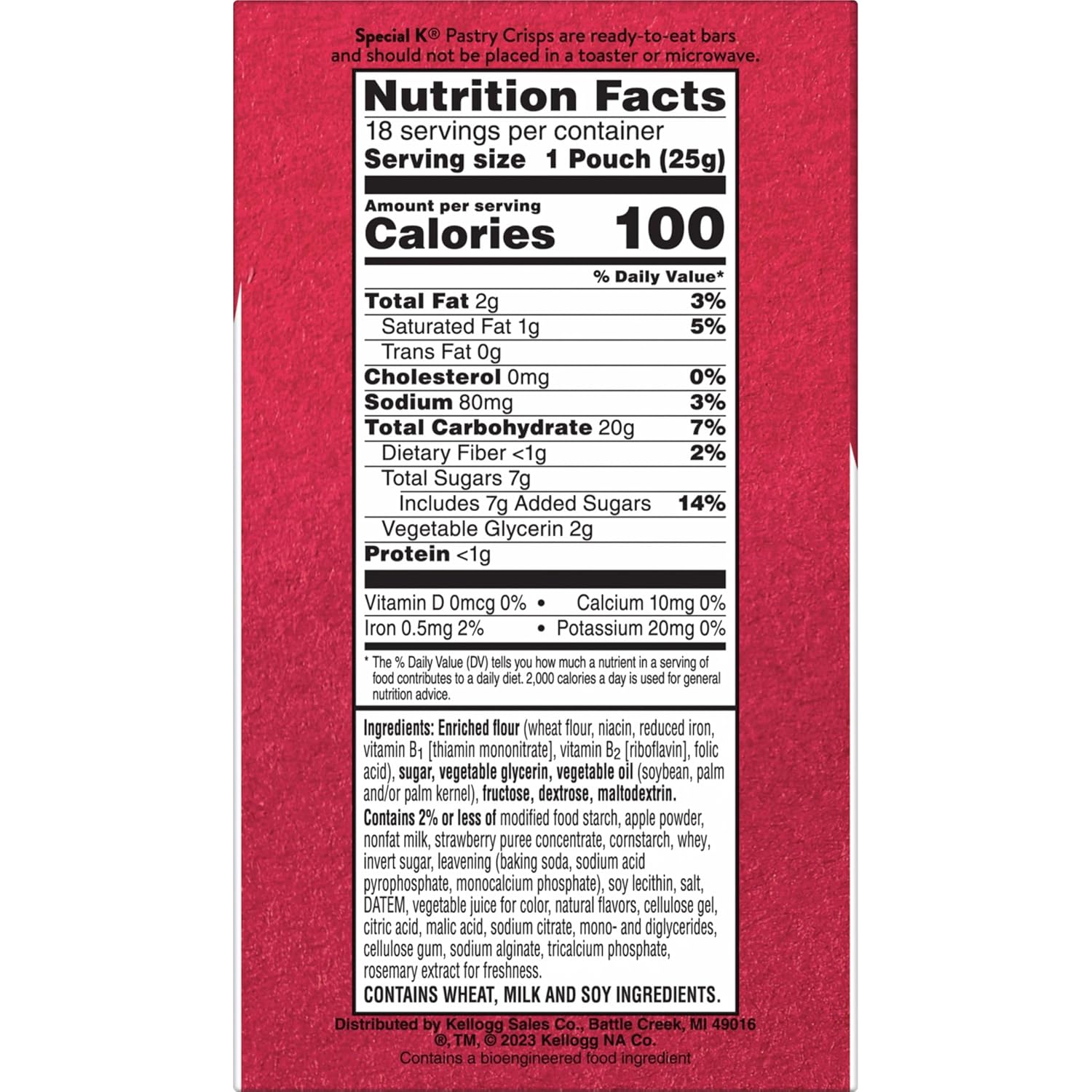 - Special K Bar Pastry Crisps, 100 Calories, Breakfast Bars, Value Size, Strawberry, 15.84oz Box (36 Crisps)