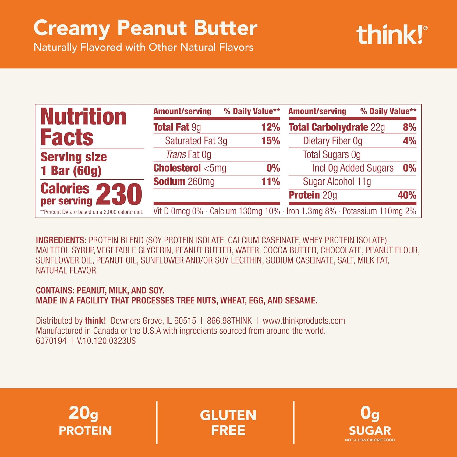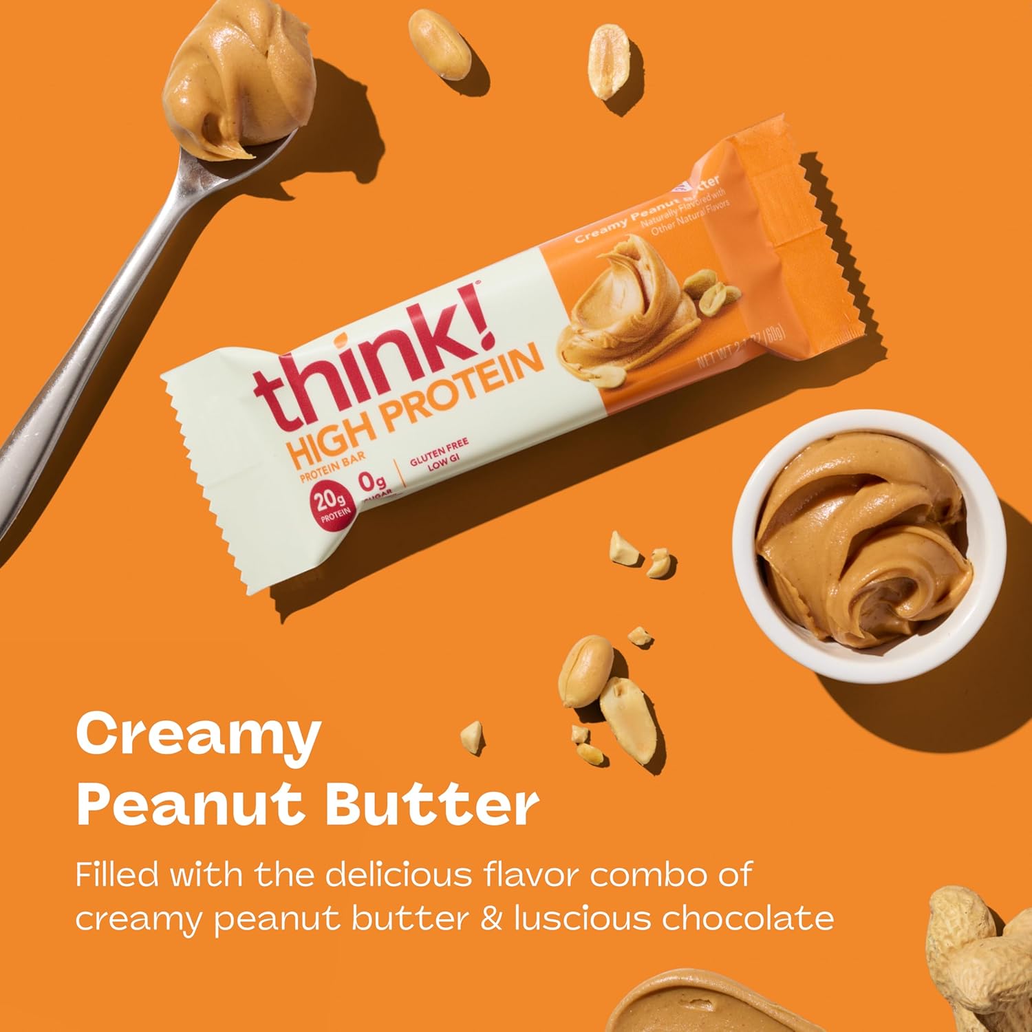 - think! Protein Bars, High Protein Snacks, Gluten Free, Kosher Friendly, Creamy Peanut Butter, Nutrition Bars, 2.1 Oz per Bar, 12 Count (Packaging May Vary)
