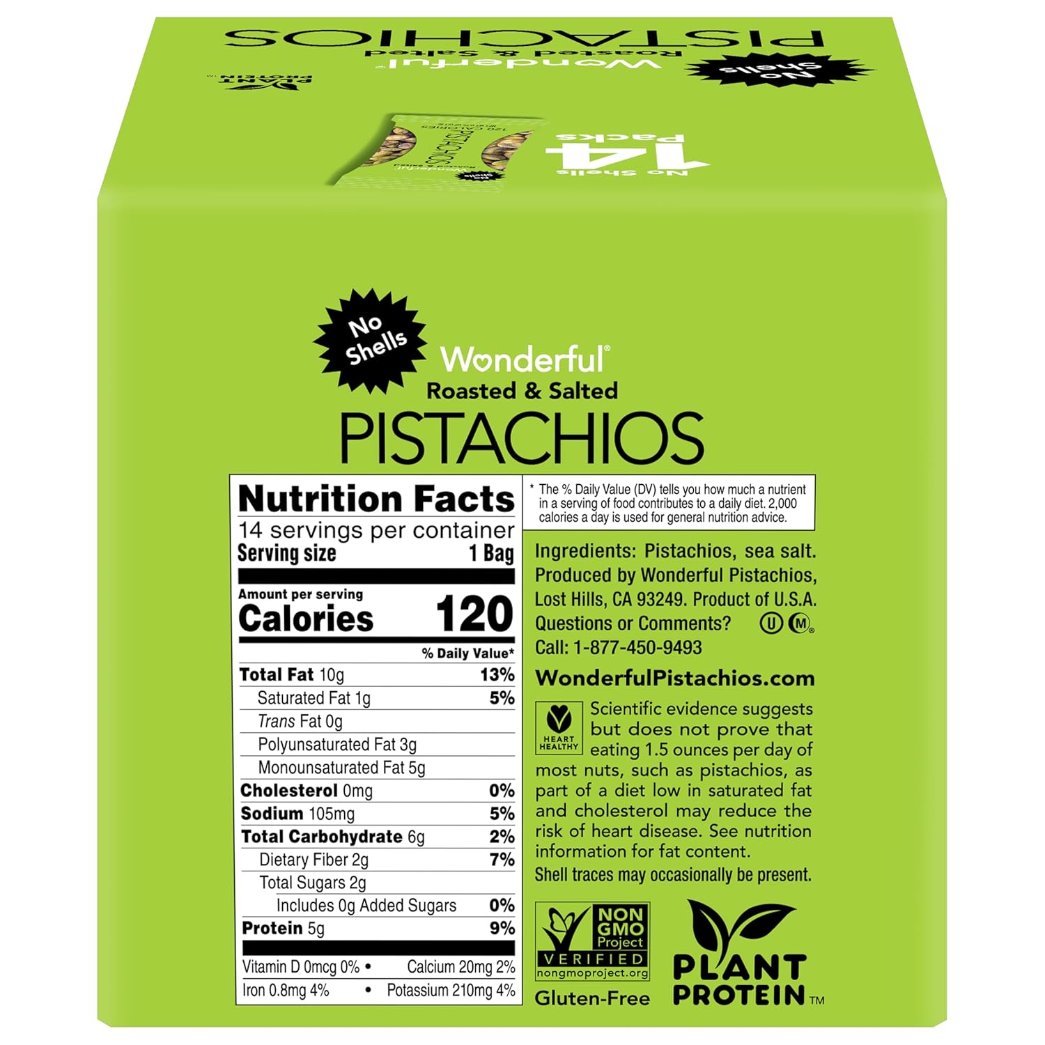 - Wonderful Pistachios No Shells, Roasted & Salted Nuts, 0.75 Ounce Bag (Pack of 14), Protein Snacks, Vegan Snacks, On-the-Go, Individual Snacks for Adults